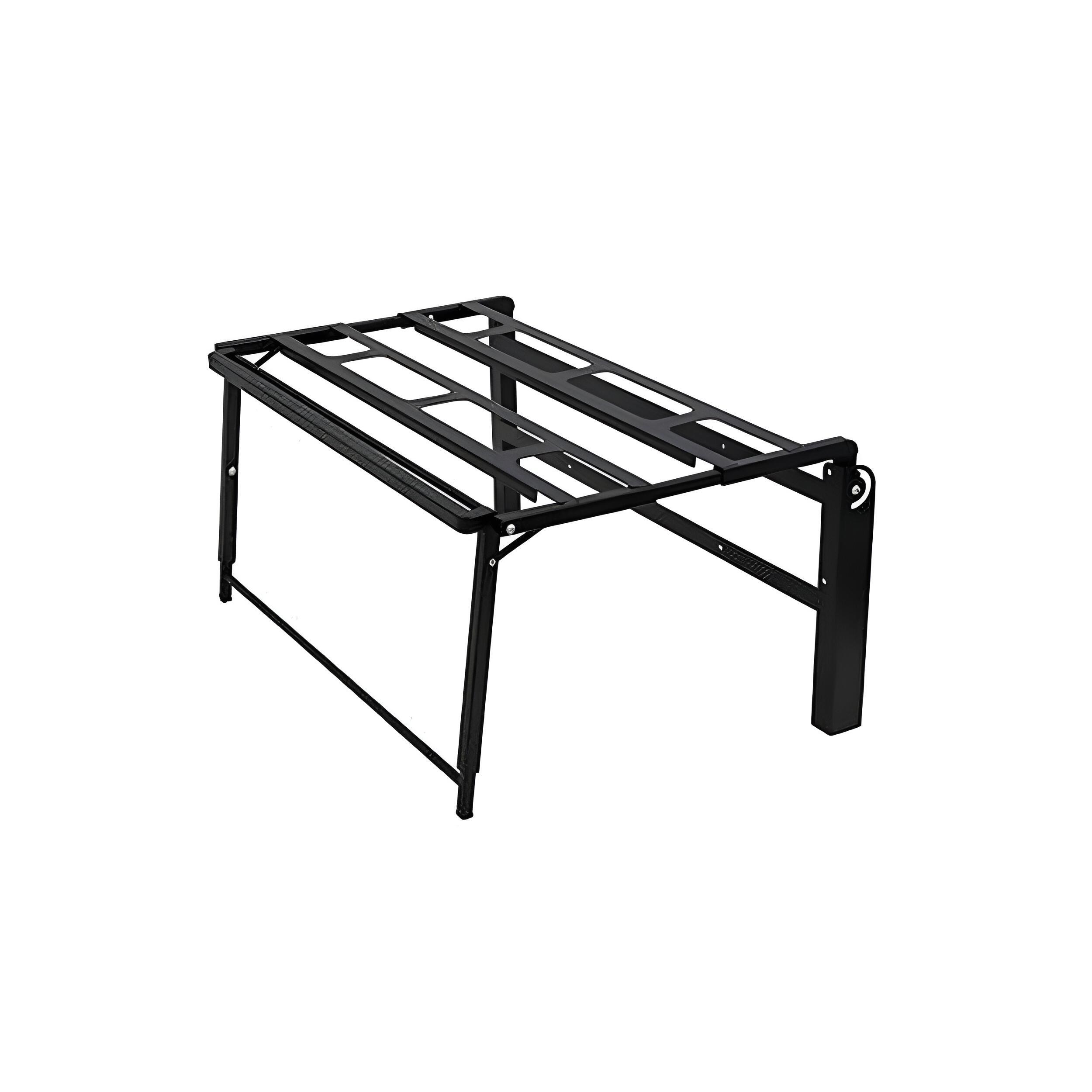 Les pieds télescopiques permettent d’ajuster la hauteur entre 38 et 50 cm. Cela facilite l’adaptation du lit aux différents niveaux de plancher présents dans un fourgon.