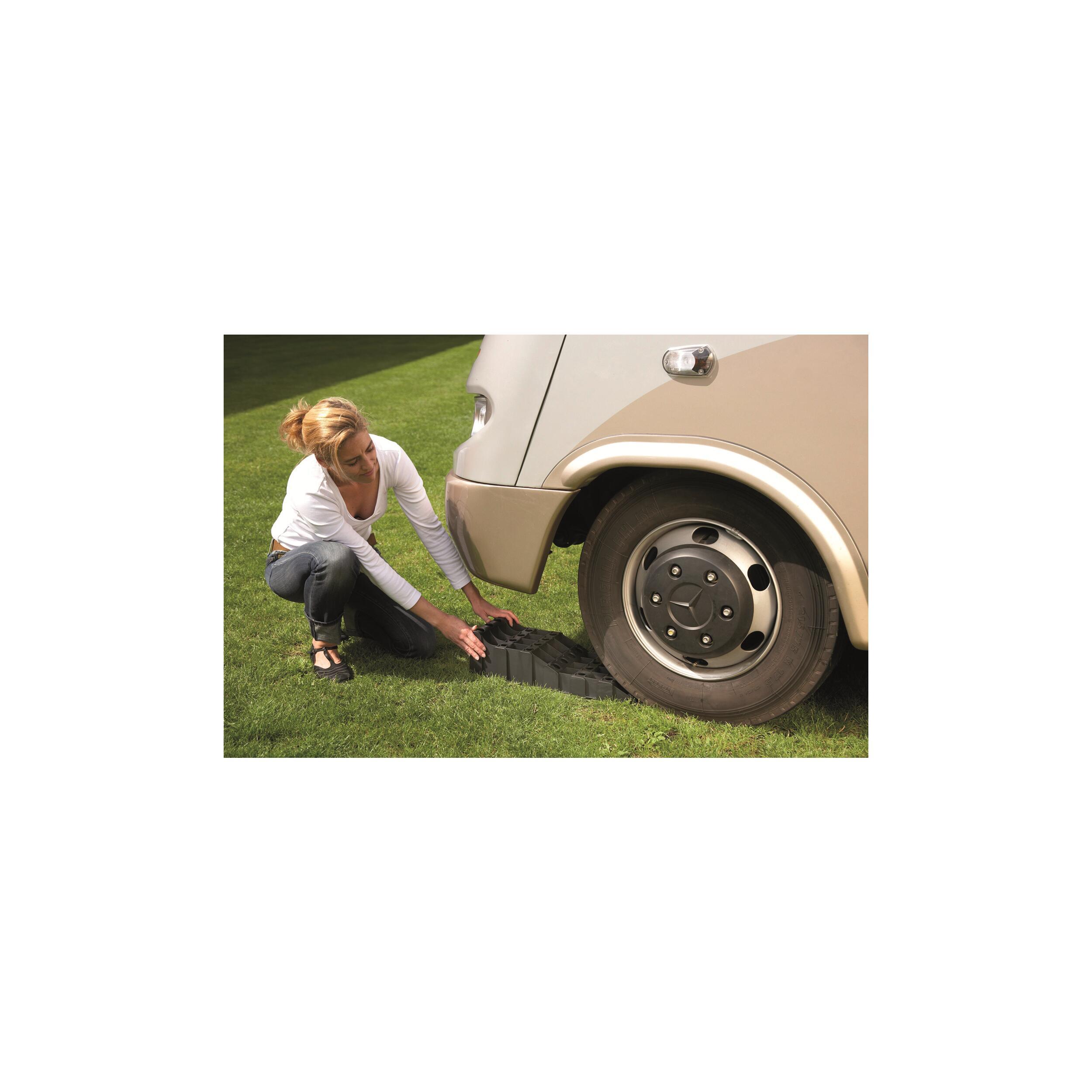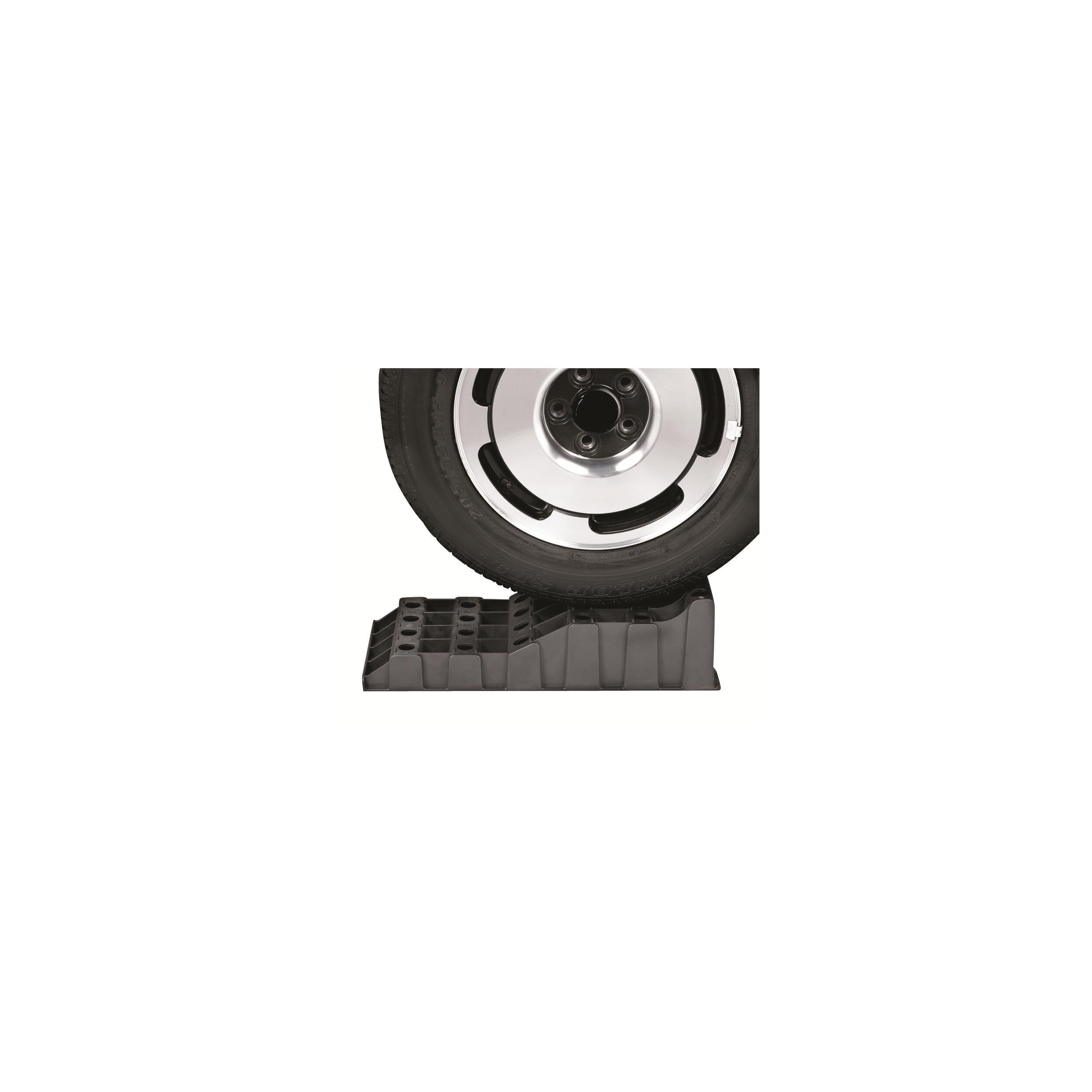 Haute résistance. Idéale pour les gros véhicules et les pneus larges. Charge de soutien testée : 5000 kg par roue. 2 niveaux : 6,5 cm et 11,5 cm. Poignée de transport ergonomique. Compatible avec la plaque d'accès anti-dérapement Acces-Aid Réf. 030265 (non fournie).