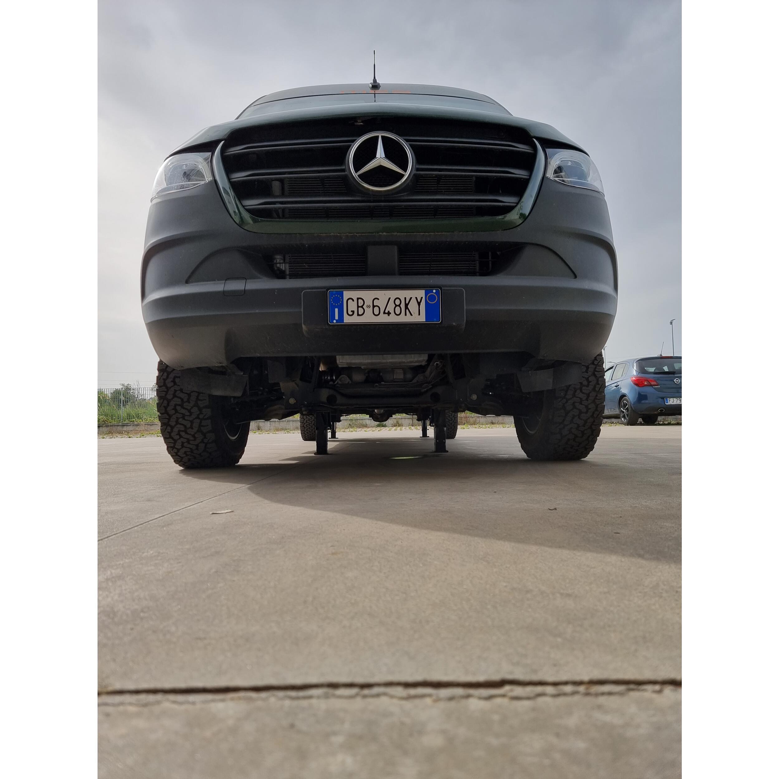 Le kit est livré complet, avec ses platines de fixation avant et arrière, la boulonnerie, les quatre vérins électriques, et leurs cales de positionnement. Toutefois, pour garantir une installation robuste et durable, notamment sur la partie arrière du châssis, l'ajout d’un kit d’adaptateurs spécifique au véhicule (non inclus) est fortement recommandé. Ce kit complémentaire contient les interfaces mécaniques vérins/châssis et une barre de renfort de rigidité arrière, indispensables pour renforcer la structure et assurer une bonne répartition des efforts.
