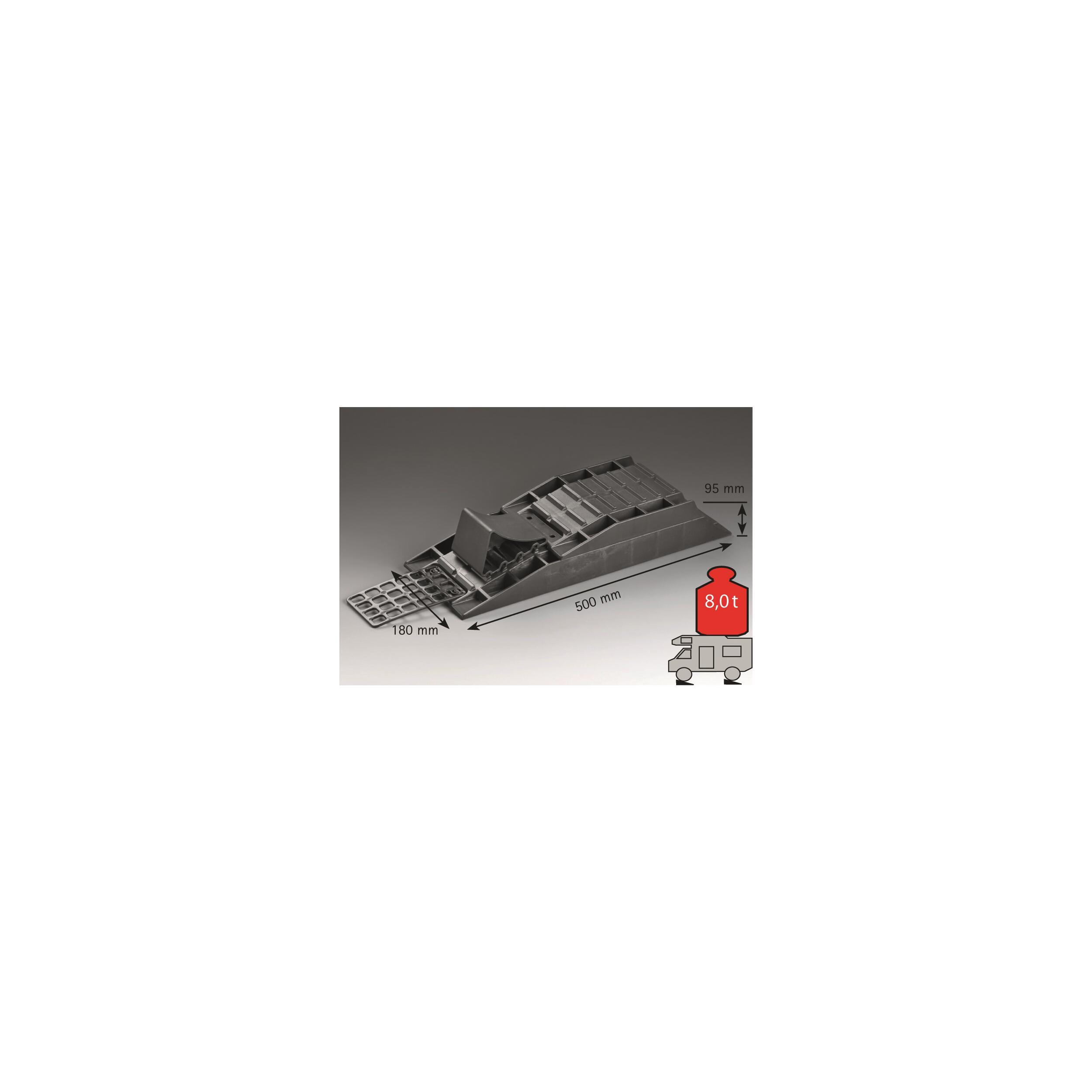 La solution calage tout-en-un : votre caravane sera toujours de niveau grâce aux multiples combinaisons possibles. Kit composé de 4 pièces : un bloc de base hauteur 5,5 cm, un bloc supplémentaire superposable de 4,0 cm, une contre-cale réglable et une plaque d'accès anti-dérapement.