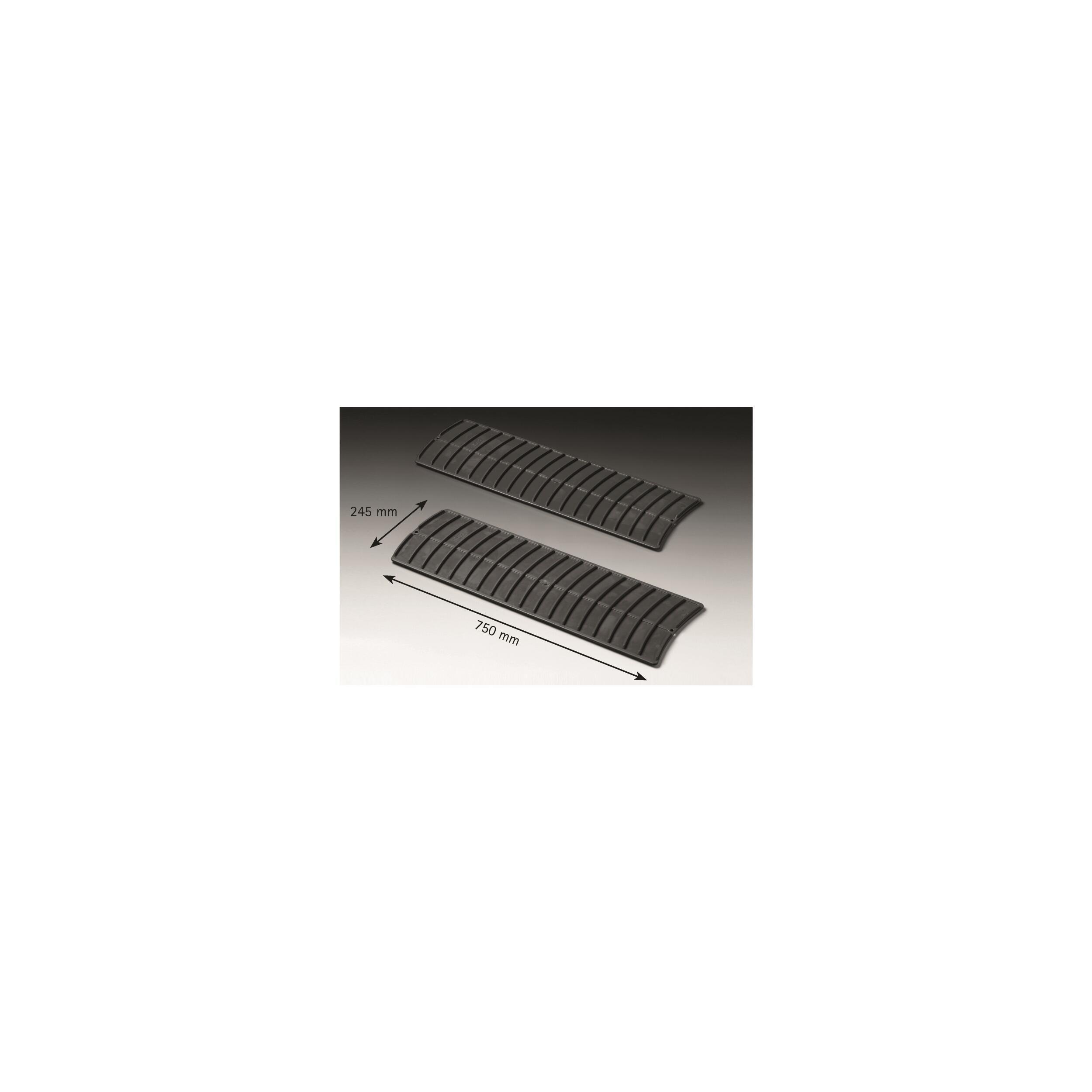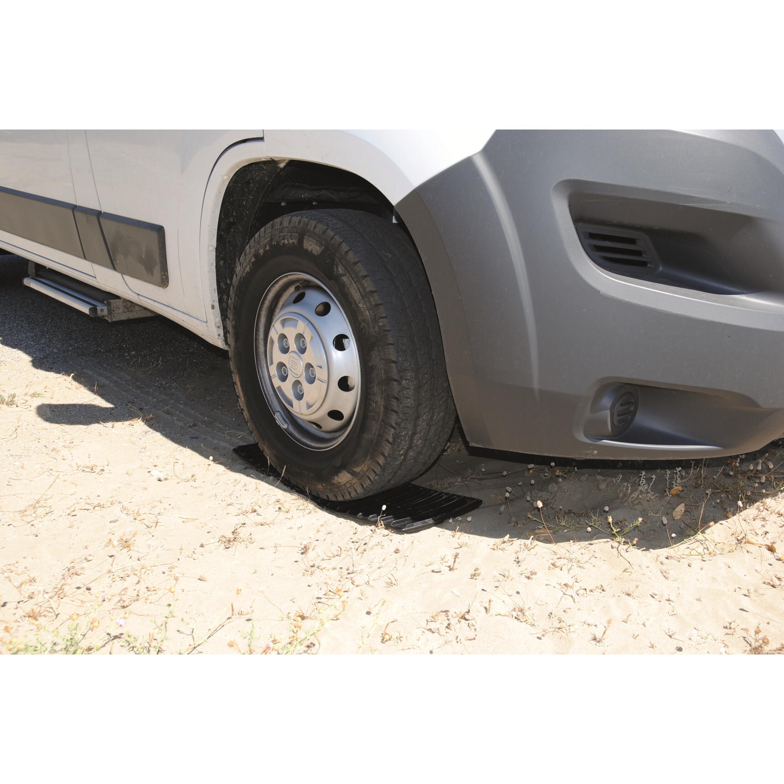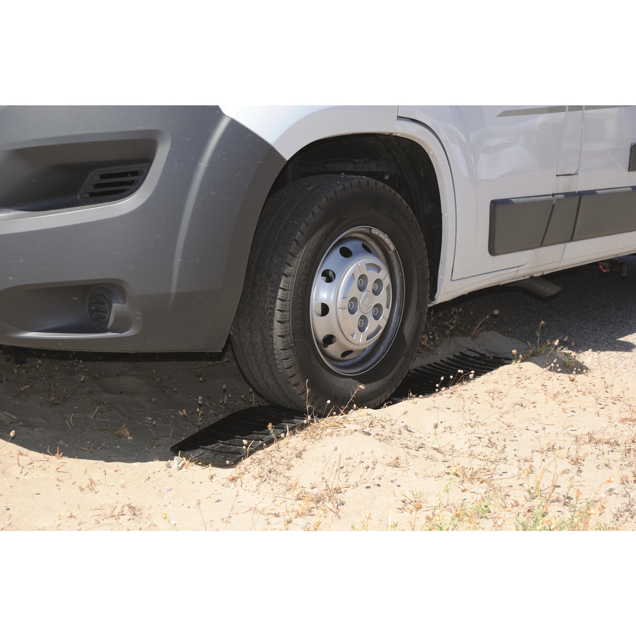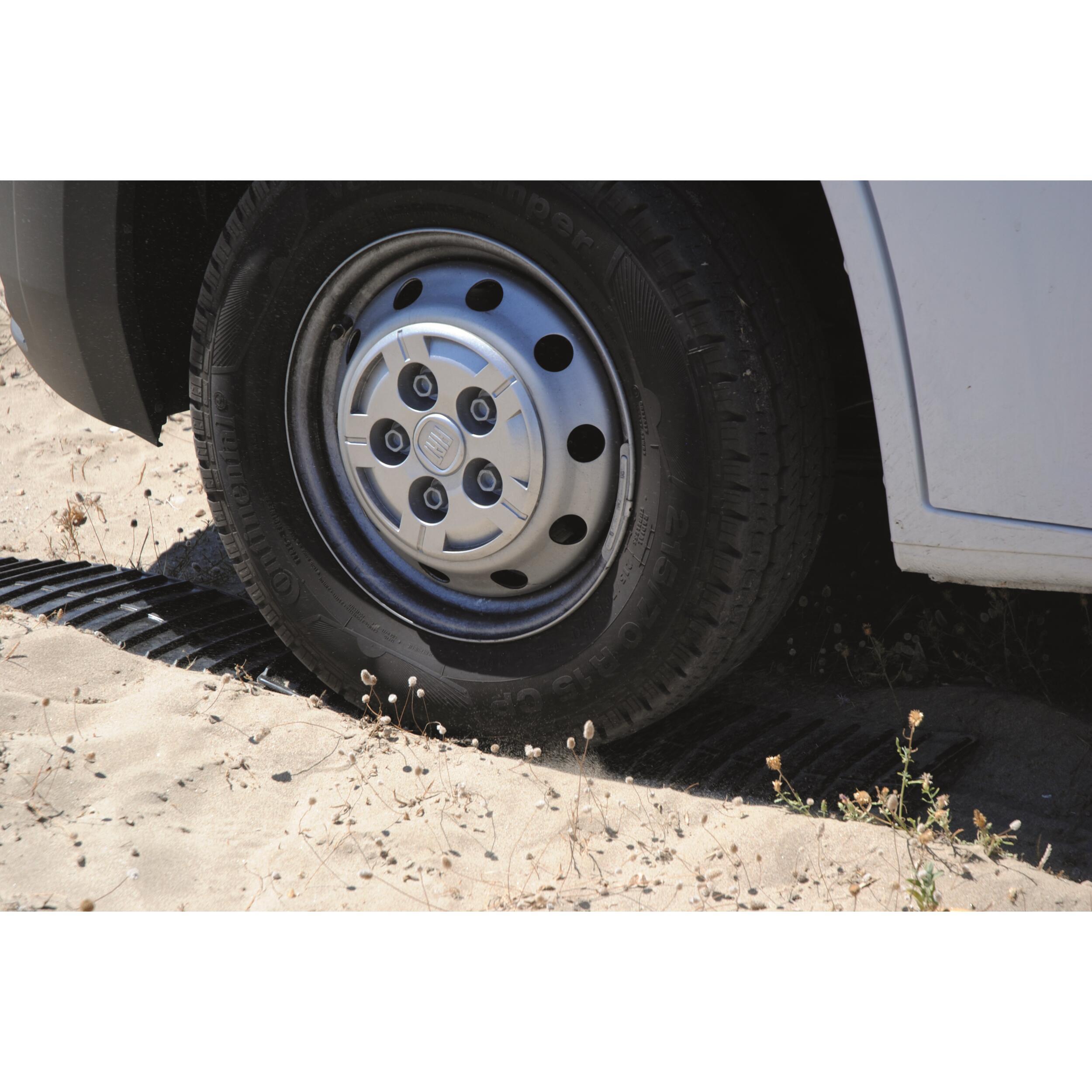 Peu encombrant et léger, c'est l'accessoire indispensable pour vous sortir de situations délicates sur terrain glissant (herbe mouillée) ou boueux (après la pluie). Semi-rigides, elles ne collent pas aux pneus et peuvent être accrochées entre elles pour obtenir 1,5 m d'accroche. Efficacité maximum grâce au relief très marqué des deux côtés. Un design unique à l'extrémité guide les cales sous la roue en cas de besoin.
