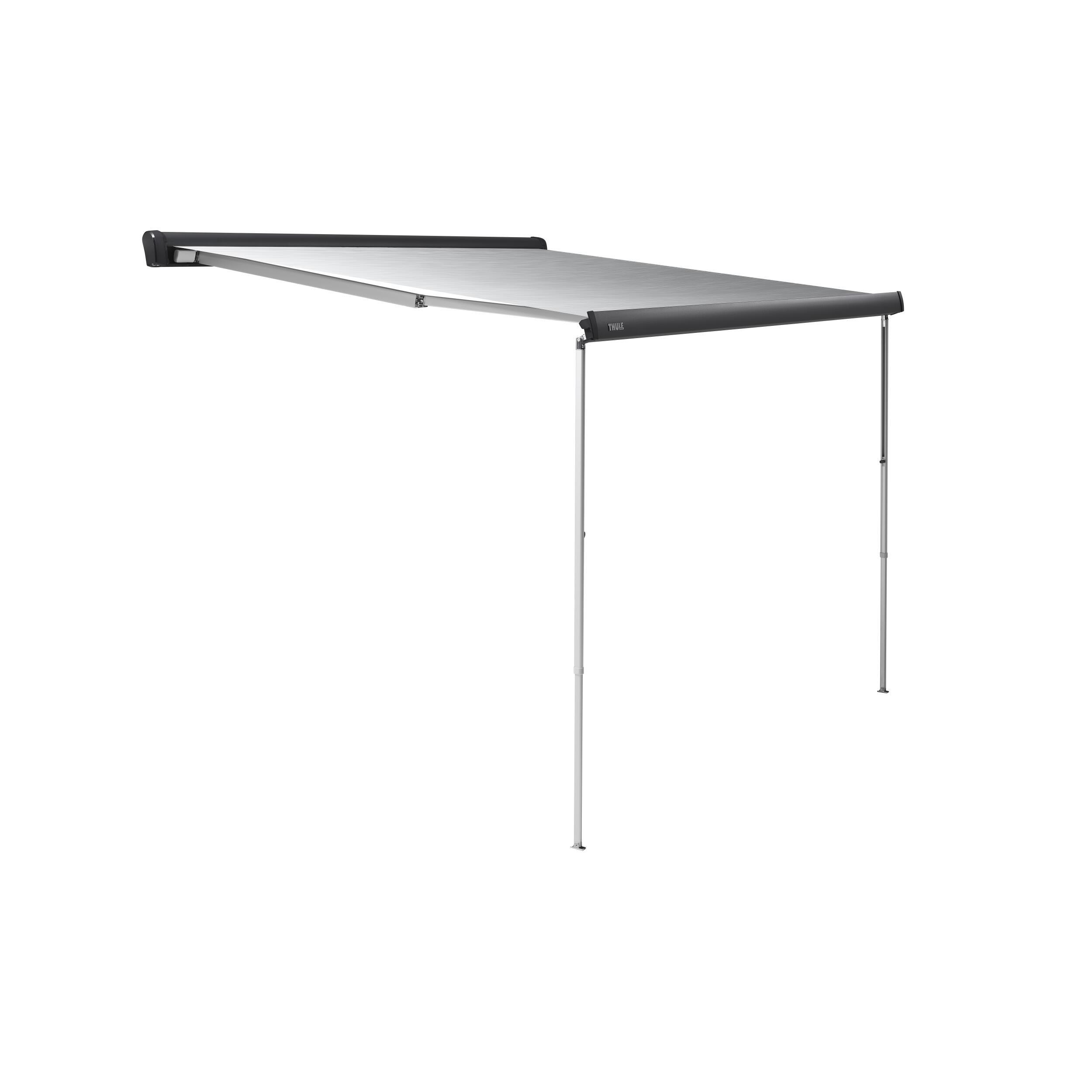 Le store Omnistor 4200 de Thule est conçu pour les camping-cars, fourgons et caravanes. Il se fixe sur la paroi du véhicule et dispose d’une manivelle télescopique pour une ouverture facile.
