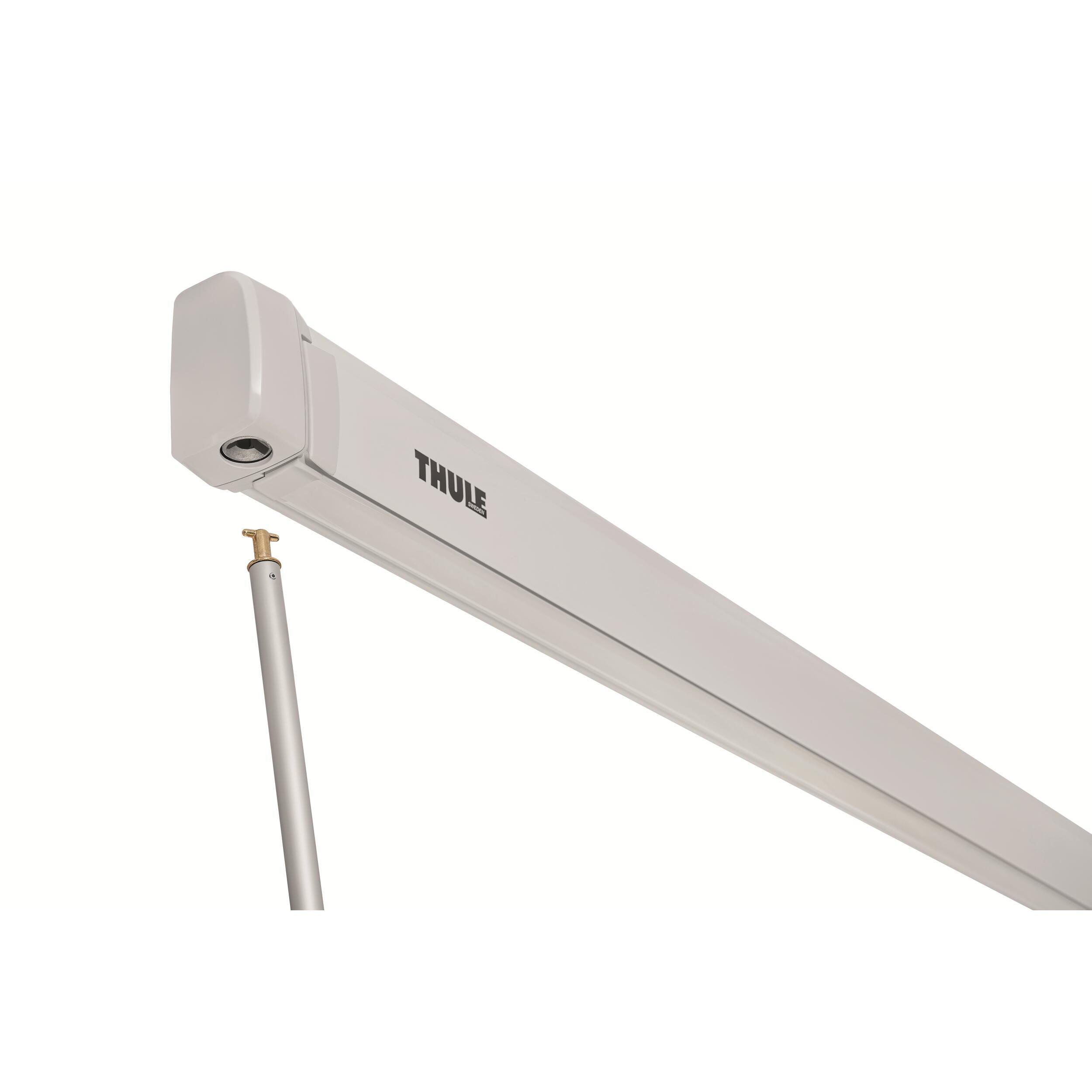 Le store Omnistor 4200 de Thule est conçu pour les camping-cars, fourgons et caravanes. Il se fixe sur la paroi du véhicule et dispose d’une manivelle télescopique pour une ouverture facile.