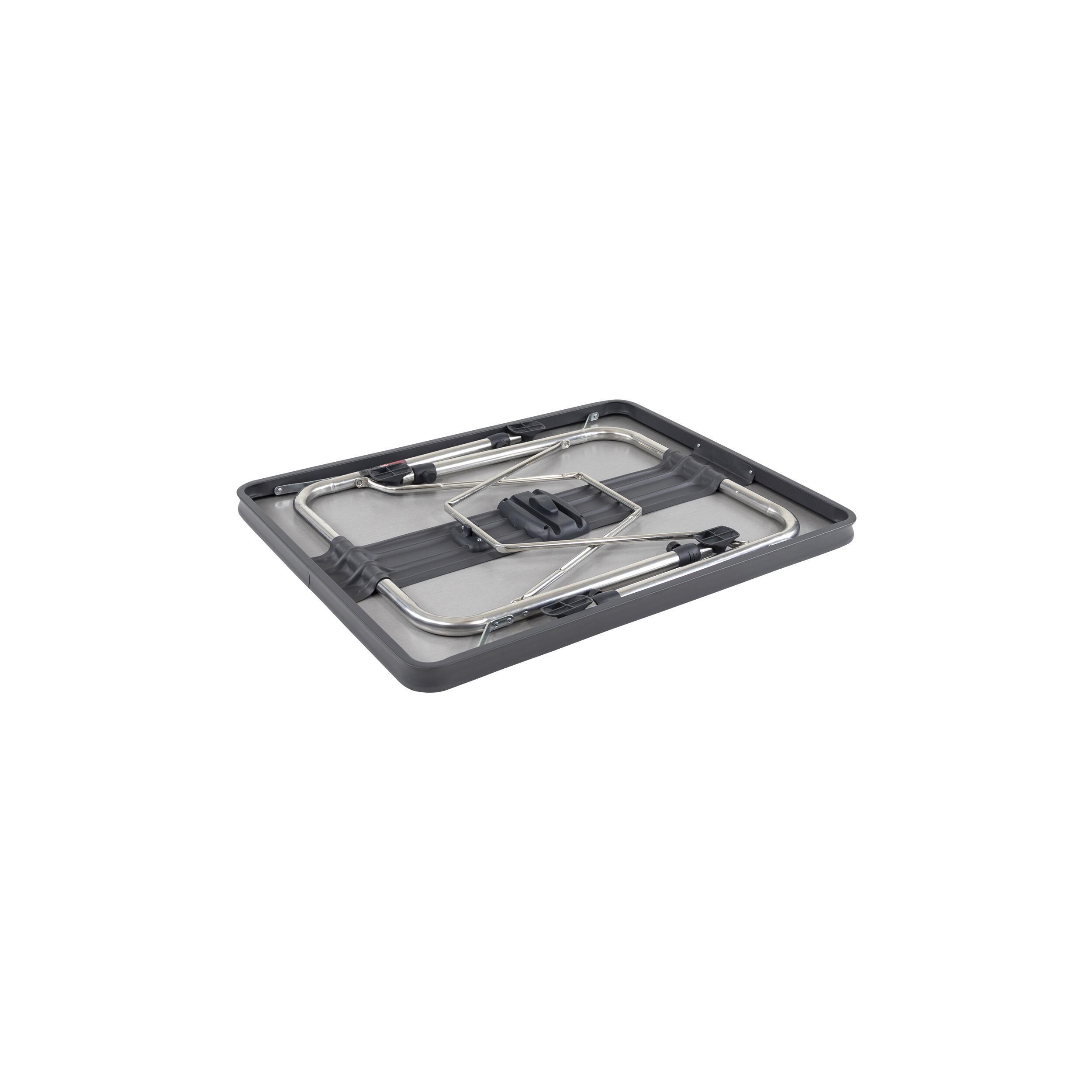 Son plateau rectangulaire, également en aluminium, est résistant aux intempéries, aux rayures et à la chaleur.