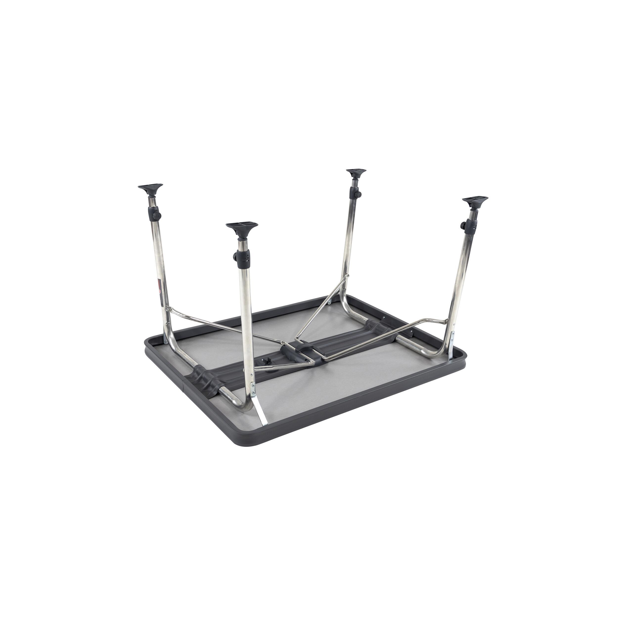 La table Crespo est très stable et légère, grâce à une structure en aluminium solide et ses pieds entièrement réglables en hauteur et équipés de patins stabilisateurs permettant de ne pas s'enfoncer dans le sol.
