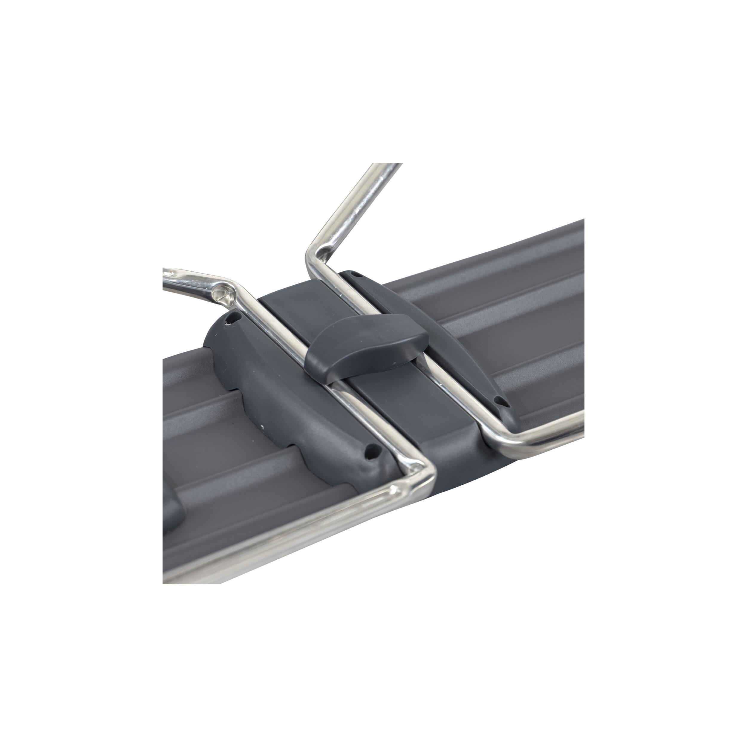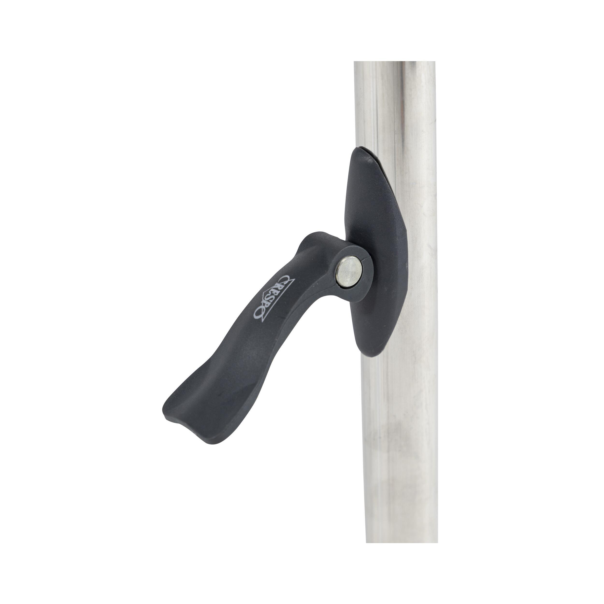 La table est équipée de pieds télescopiques réglables en hauteur de 48 à 70 cm, avec un réglage continu. Le système de verrouillage et le serrage à pince assurent un maintien sûr. Les patins stabilisateurs permettent une bonne stabilité sur sol irrégulier et évitent que les pieds ne s’enfoncent dans le sol.