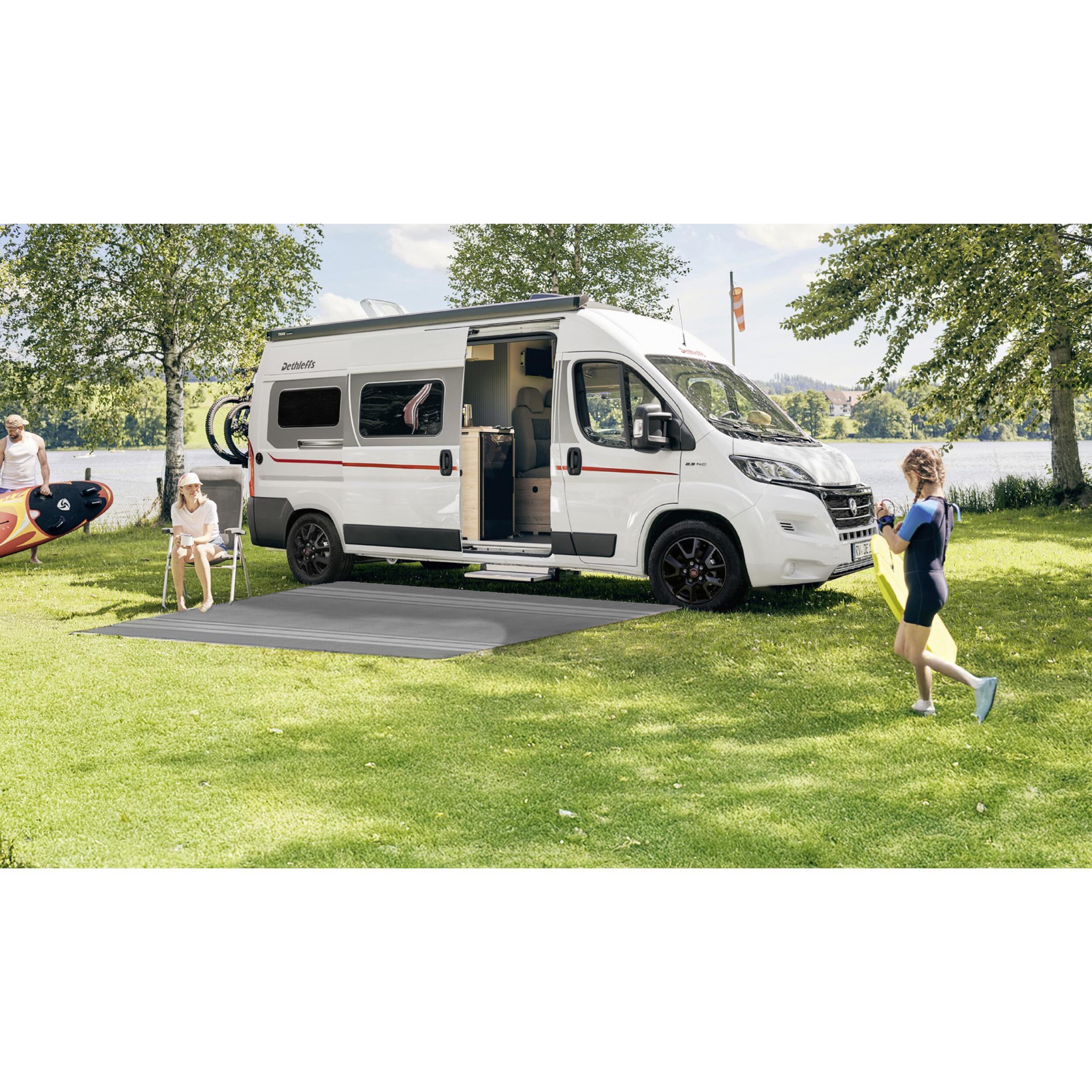 Tapis de sol multi-usages idéal pour les vans et fourgons. Il est compact, léger, lavable et anti-moisissure. Il laisse le sol respirer.