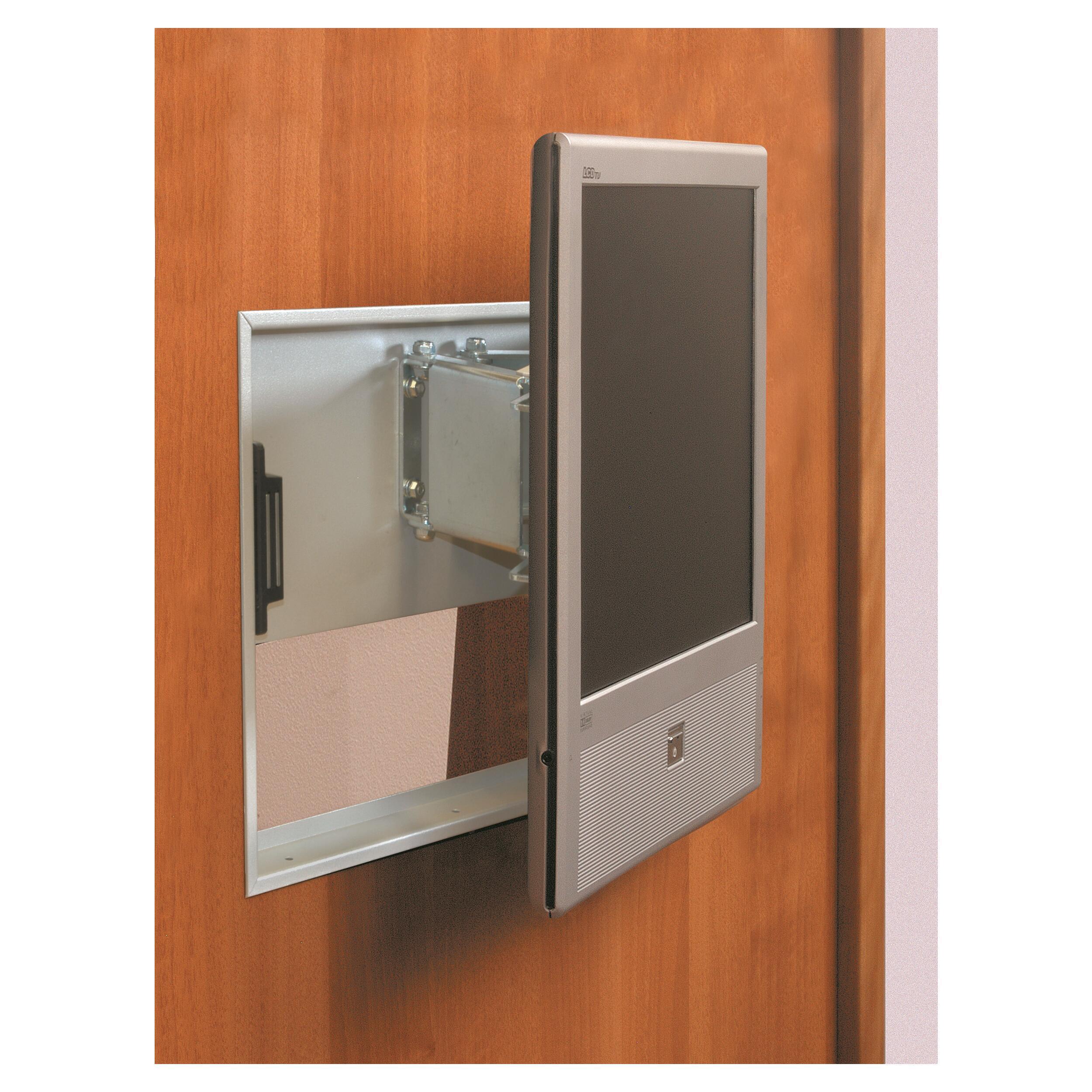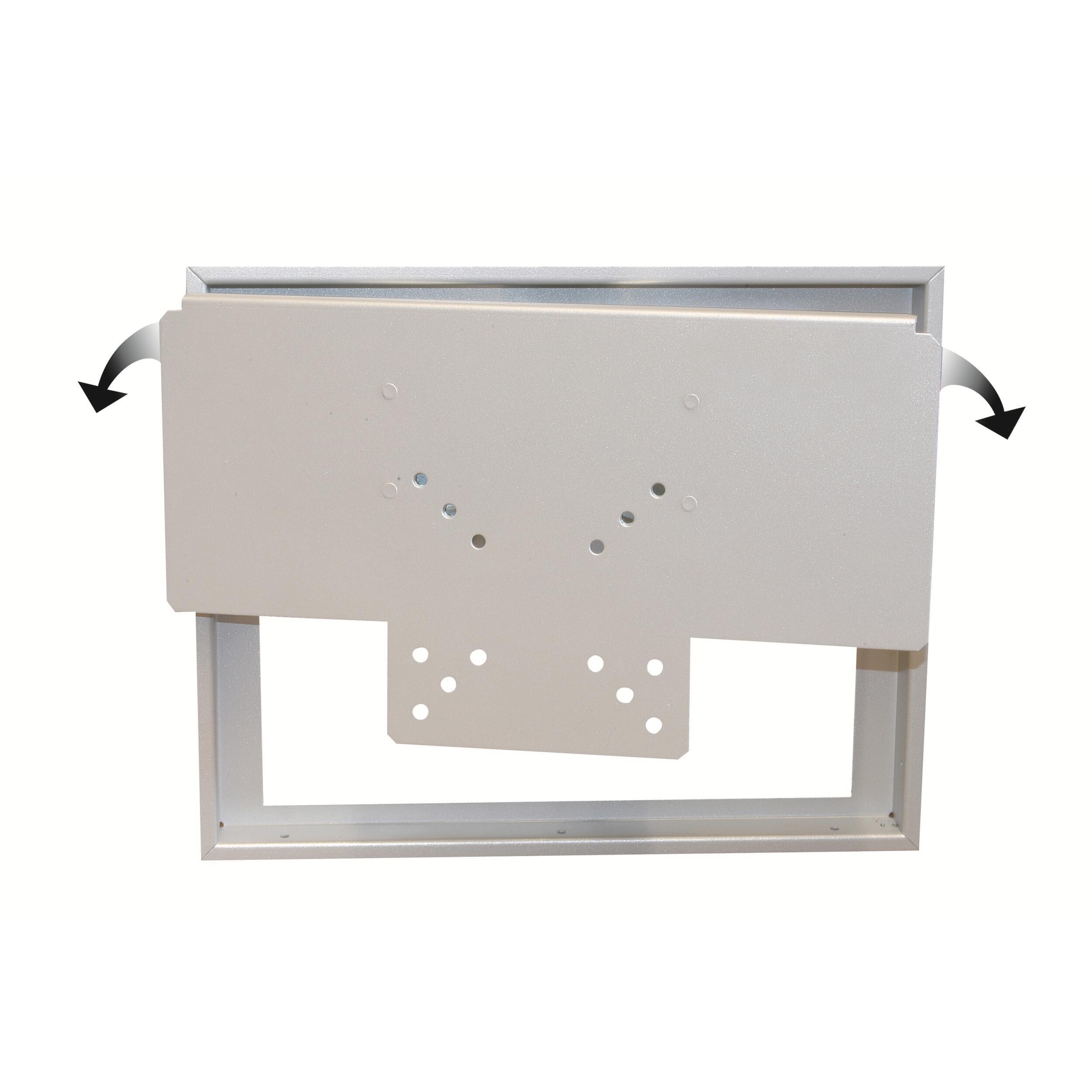 Encastrement dans un encadrement ou dans un mur. Extractible de 105 mm par rapport à la paroi et orientable de 23° vers la gauche ou la droite.