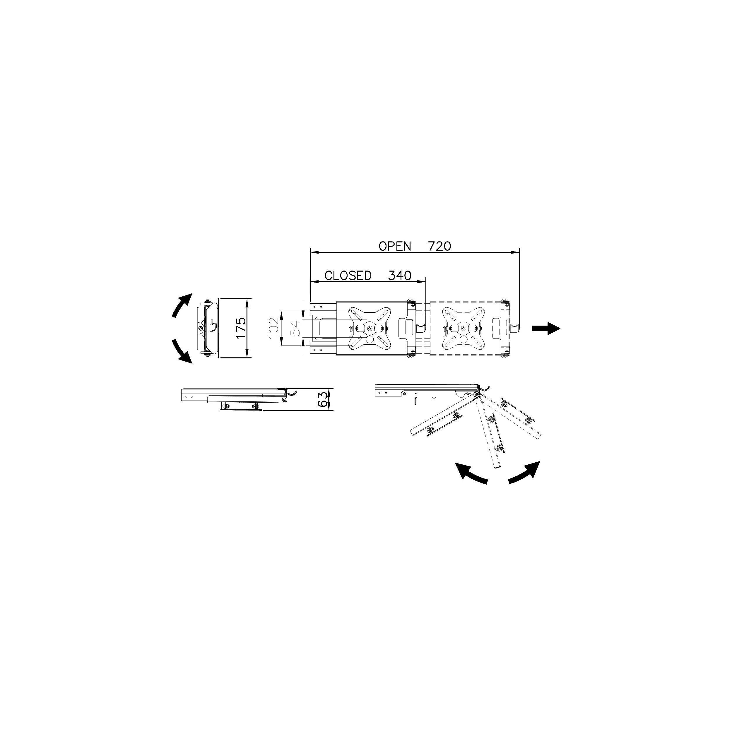 Support TV et tablette orientable à extraction latérale et support LCD à paroi. Taille L