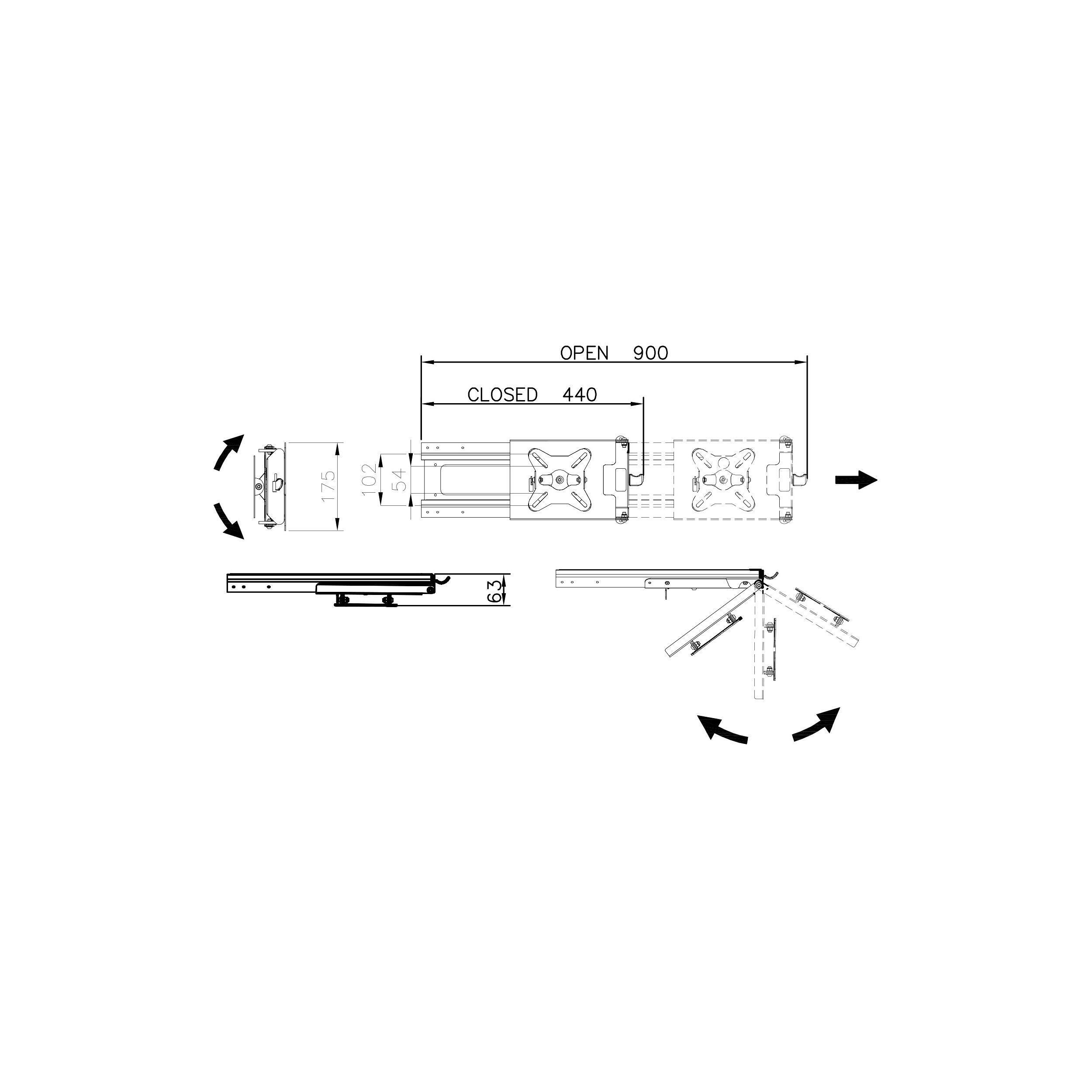 Support TV et tablette orientable à extraction latérale et support LCD à paroi. Taille XL