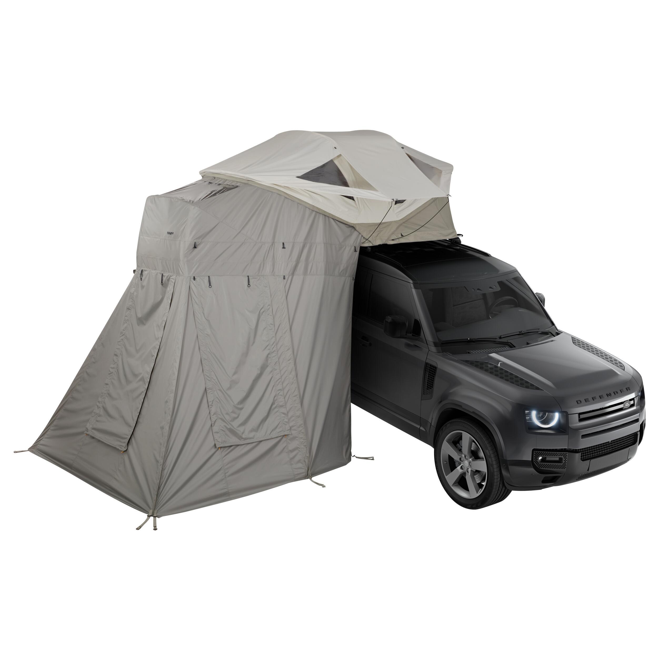 L'annexe pour tente de toit Thule Approach transforme votre tente en un auvent ouvert, offrant luminosité et protection contre les insectes, avec une installation facile.