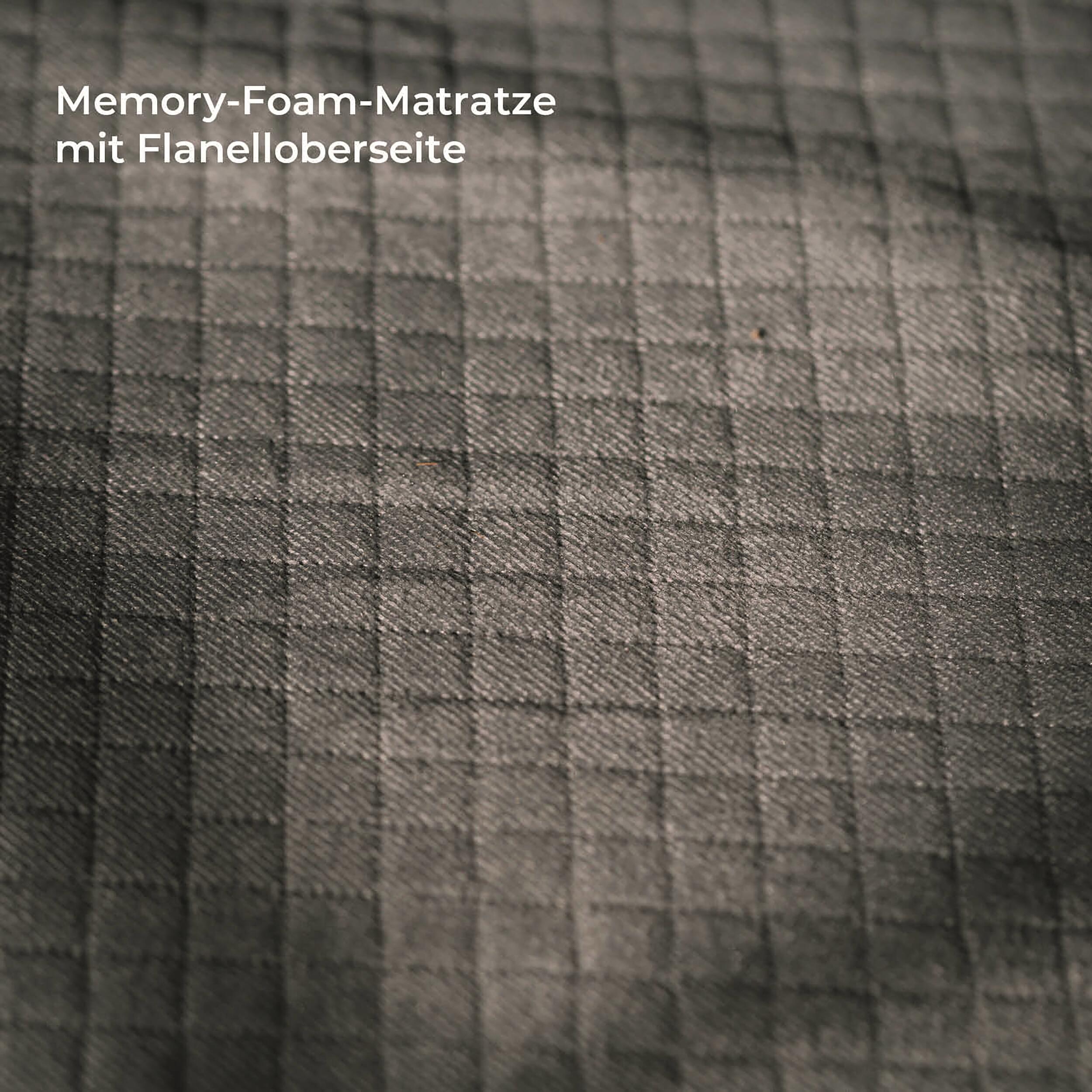 Le matelas à mémoire de forme, de 6 cm d'épaisseur, en mousse de viscose, se réchauffe grâce à la température corporelle et s'adapte au corps.