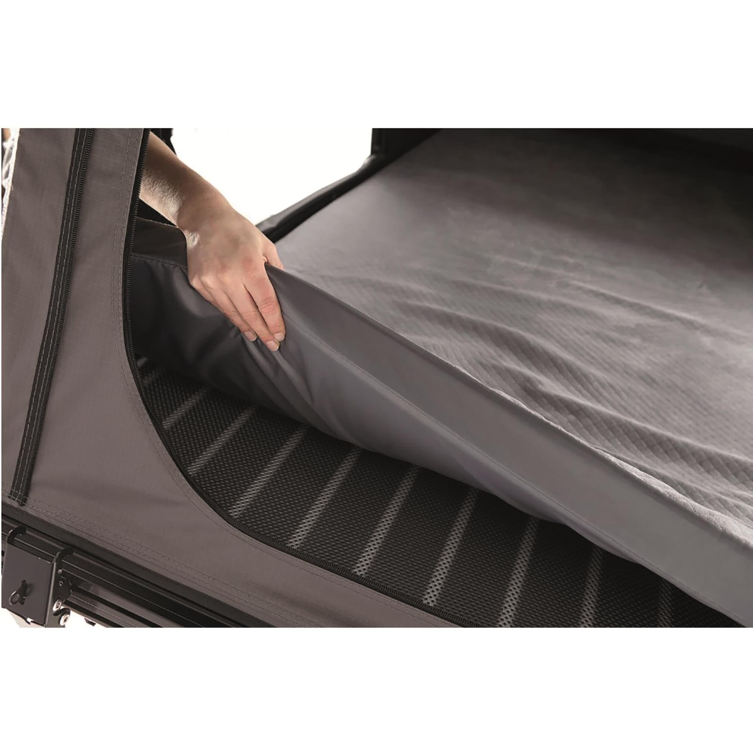 De plus, un matelas anti condensation au maillage 3D est déjà intégré pour assurer une meilleure circulation de l’air. À l’entrée de la tente se trouvent 2 sacs à chaussures pratiques, afin que l'intérieur de la tente reste aussi propre que possible.