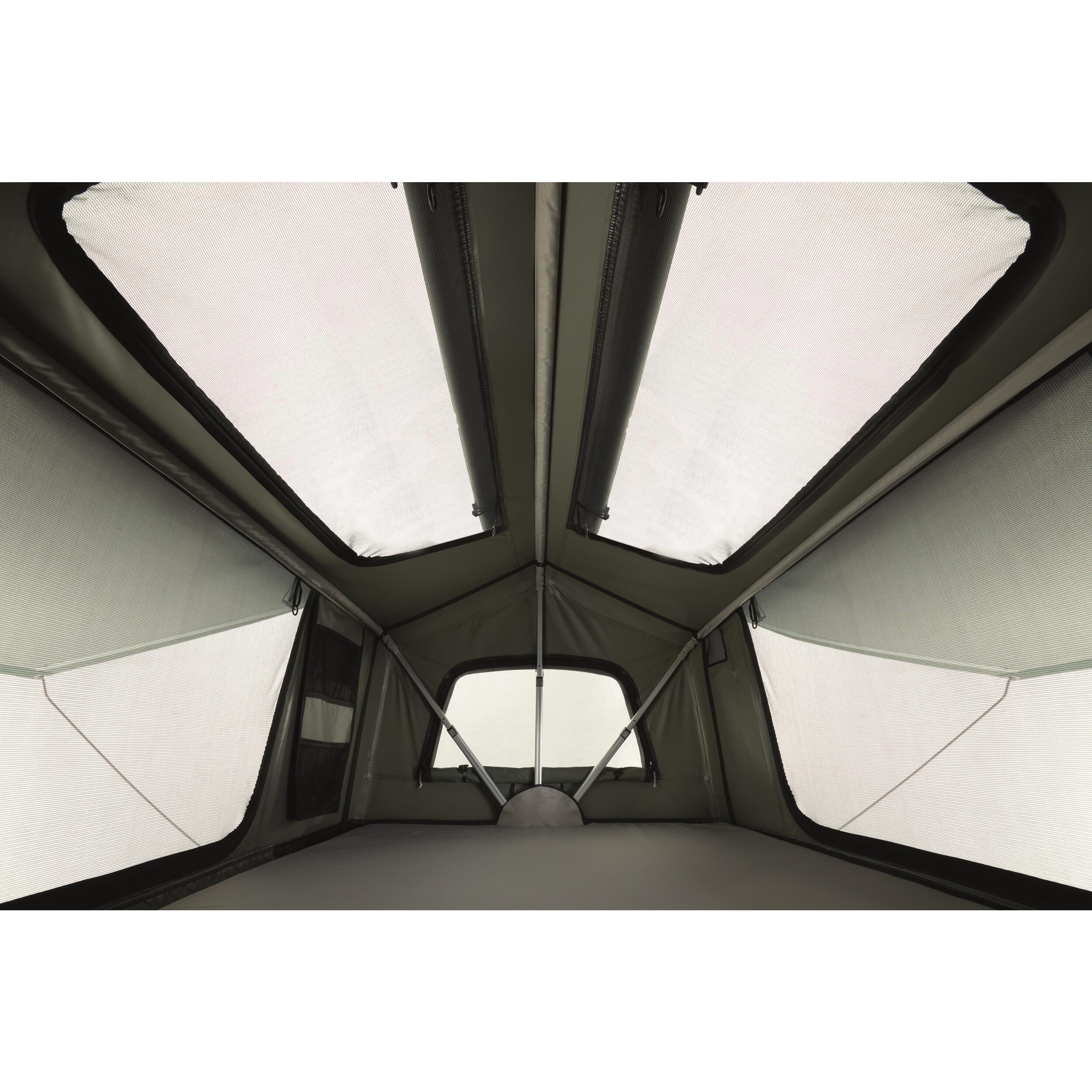 L'intérieur de la tente est conçu pour maximiser le confort et l'expérience en plein air. Avec une entrée large, une fenêtre arrière panoramique surdimensionnée et deux puits de lumière, elle offre une aération maximale et une vue imprenable sur le ciel étoilé, transformant chaque nuit en une expérience mémorable.