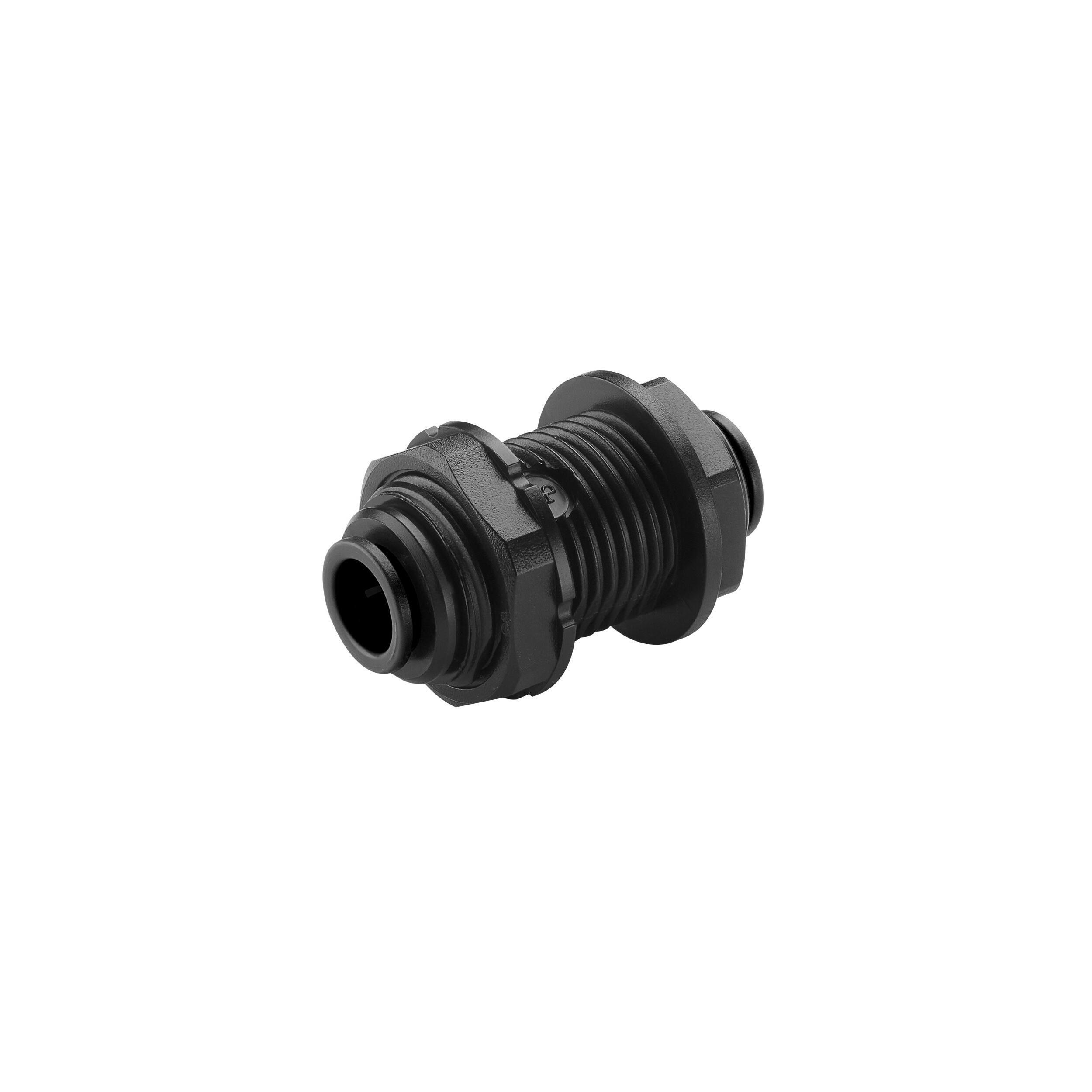 L'adaptateur en laiton avec raccordement traversant pushfit de John Guest est conçu pour les connexions de tuyaux métriques dans des applications à travers les murs.