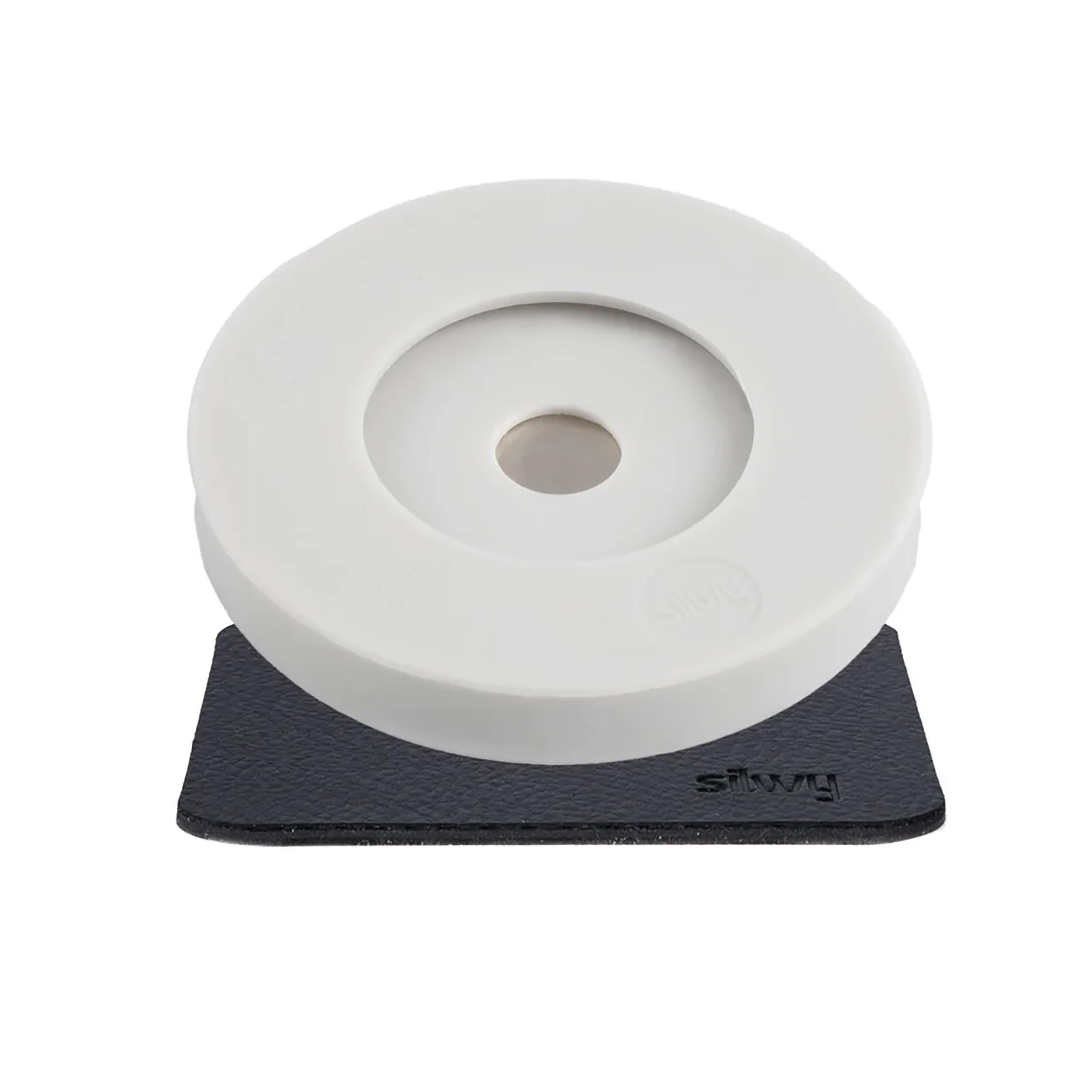 Adaptateur aimanté Silwy en silicone élastique, compatible avec tous les verres à pied, livré avec un patin nano-gel métallique réutilisable. Disponible en gris ou anthracite.