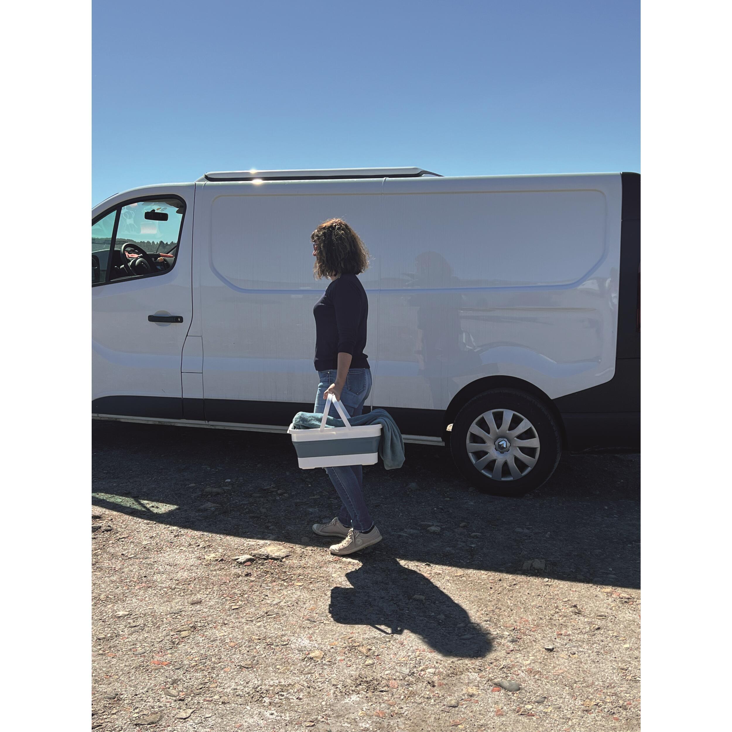 - Pour faire la vaisselle : La bassine rétractable peut être utilisée pour laver la vaisselle dans un camping ou en voyage. Elle peut être remplie d'eau chaude et de savon, et une fois la vaisselle lavée, elle peut être rétractée et rangée facilement.