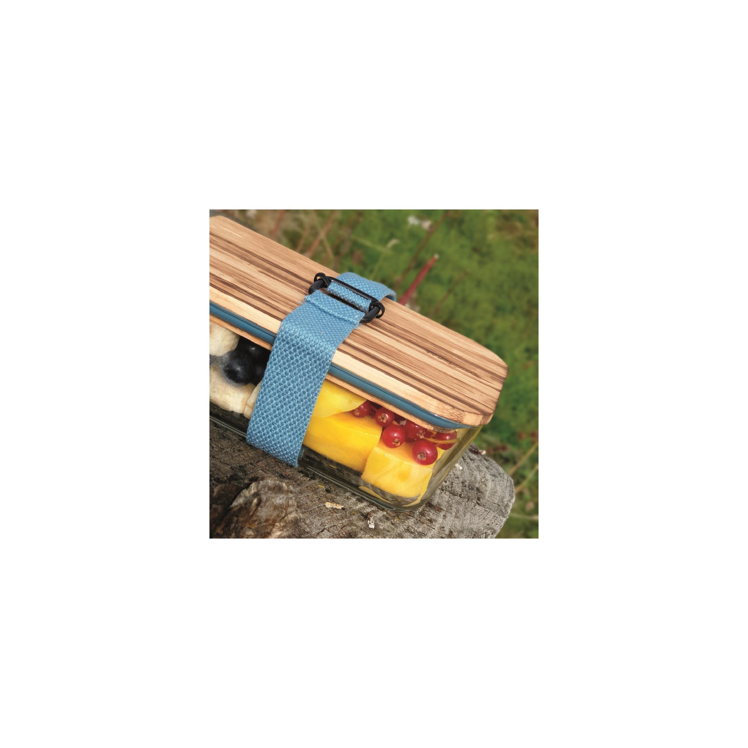 Elle est complétée par une ceinture en coton et un séparateur en inox inclus. L’ensemble forme une lunch box à l’apparence design.