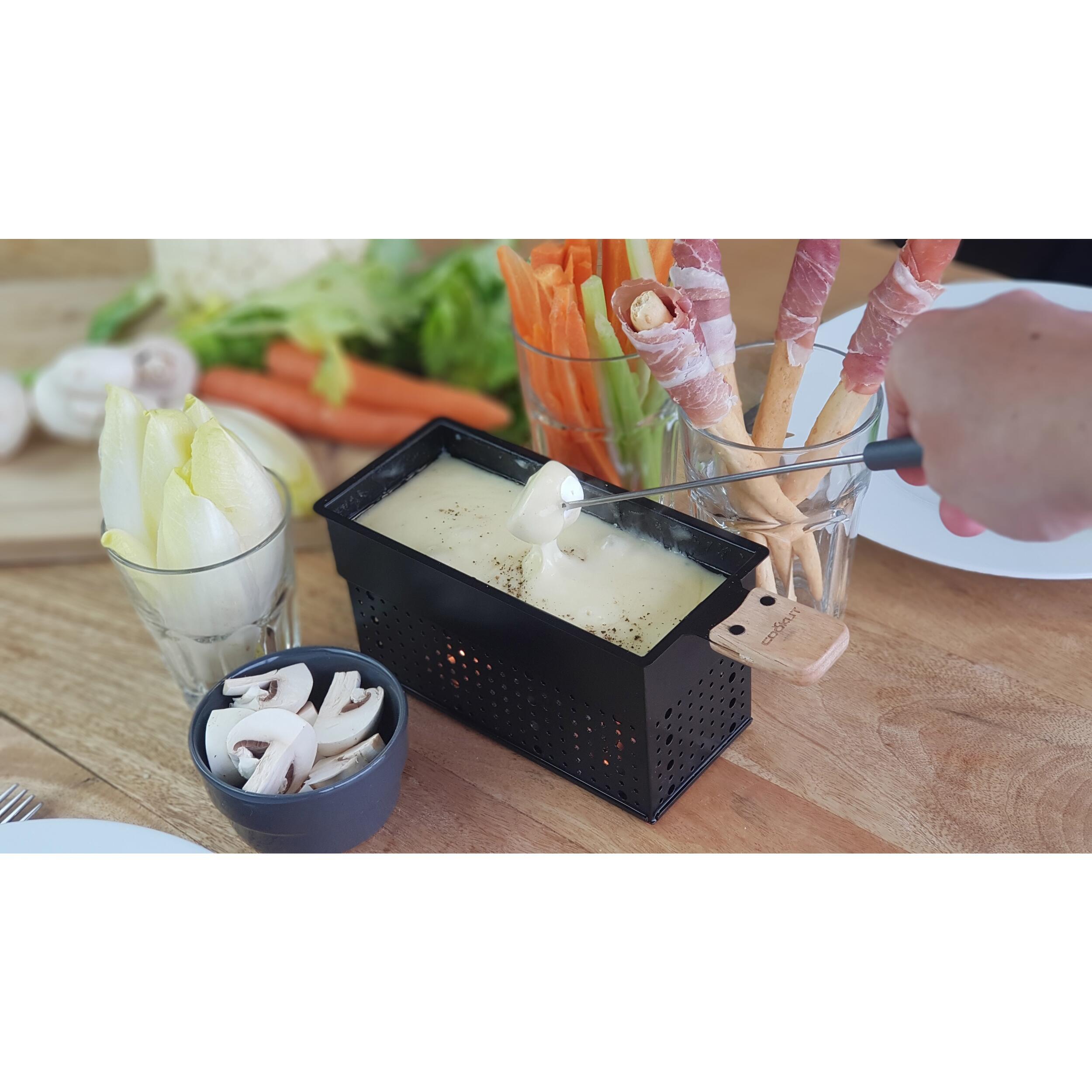 - Un caquelon à fondue pour fondue au fromage ou au chocolat