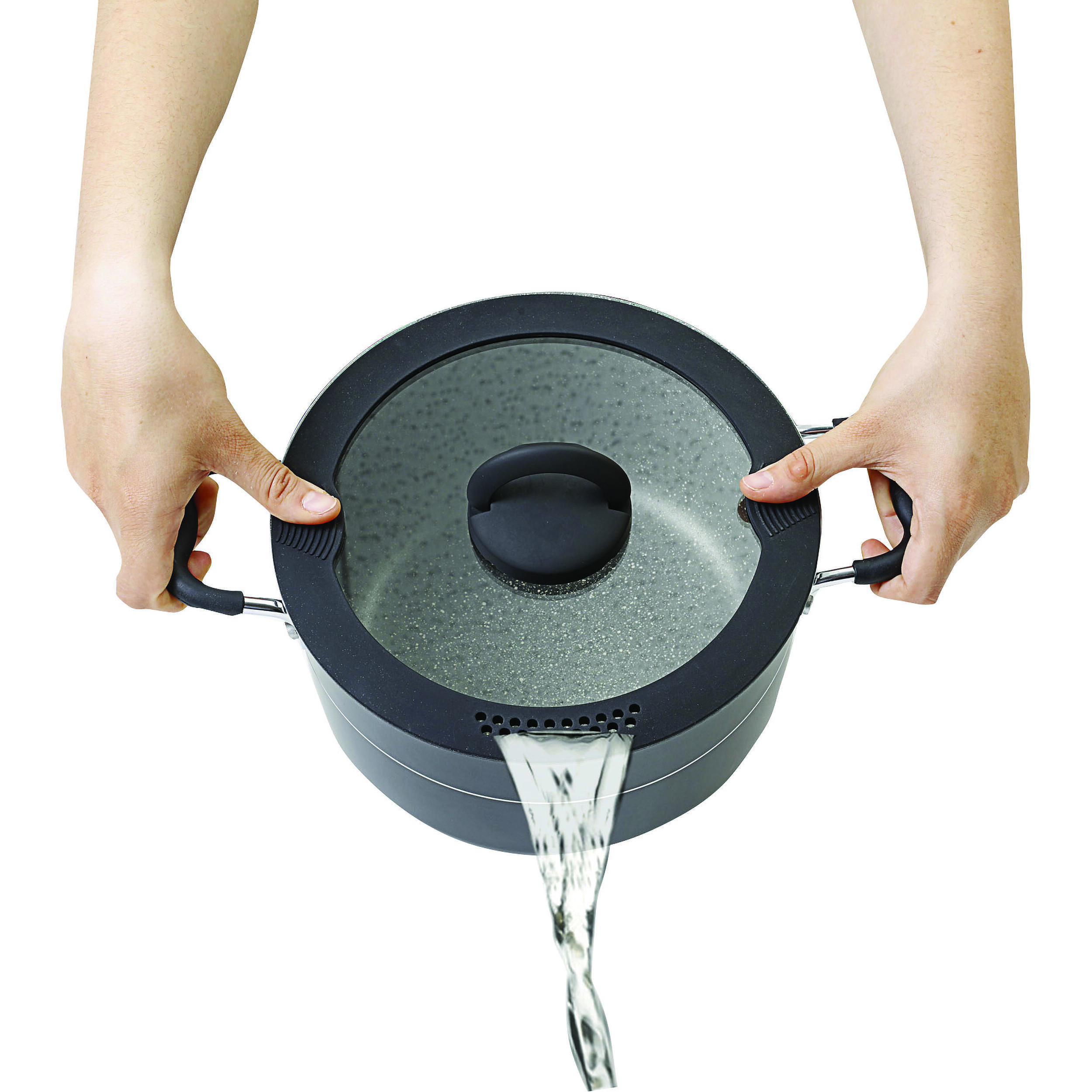 Les ouvertures intégrées pour passoire permettent un égouttage efficace, mais il est conseillé de manipuler la casserole avec précaution pour éviter les éclaboussures. Assurez-vous également que les trous sont suffisamment grands pour vos besoins spécifiques.