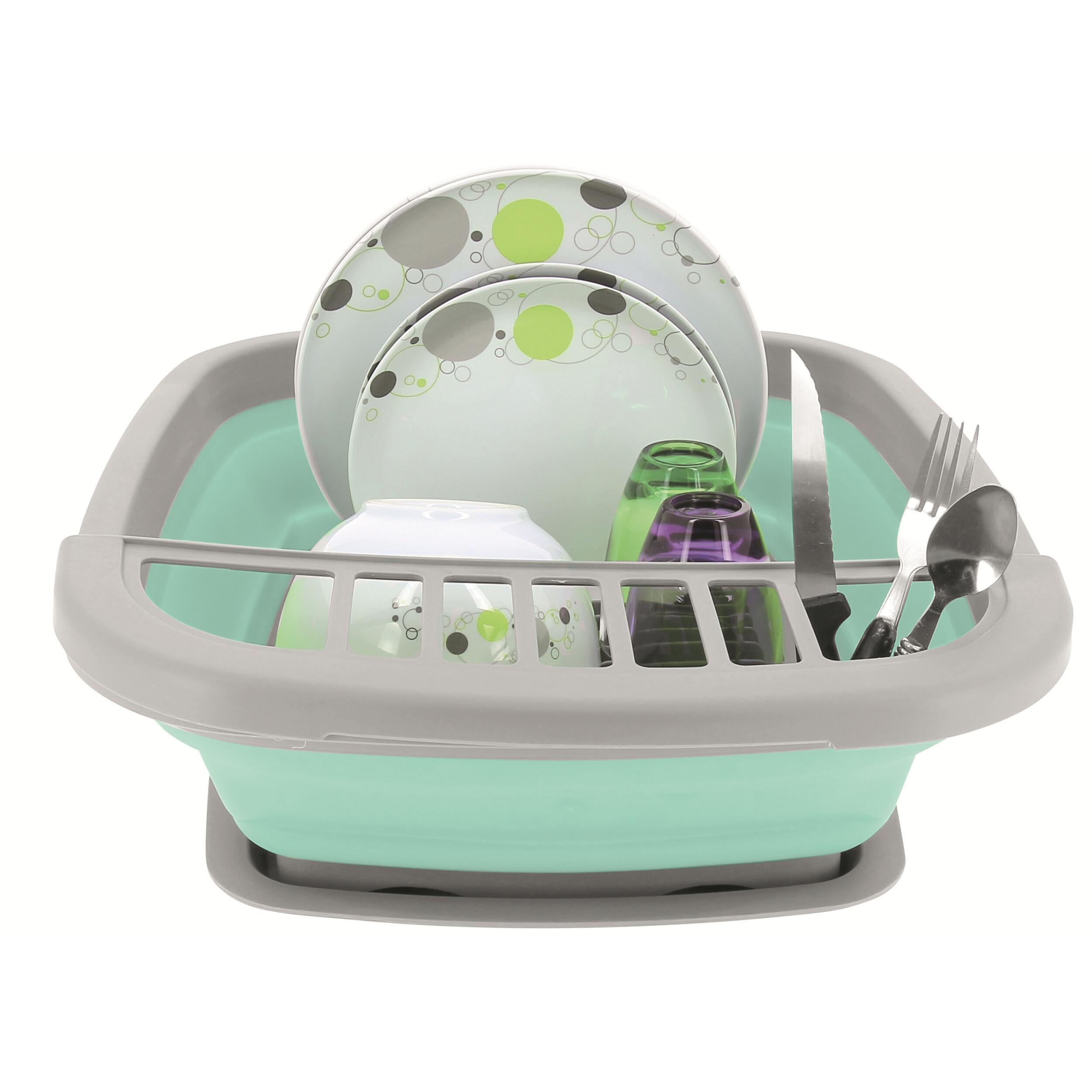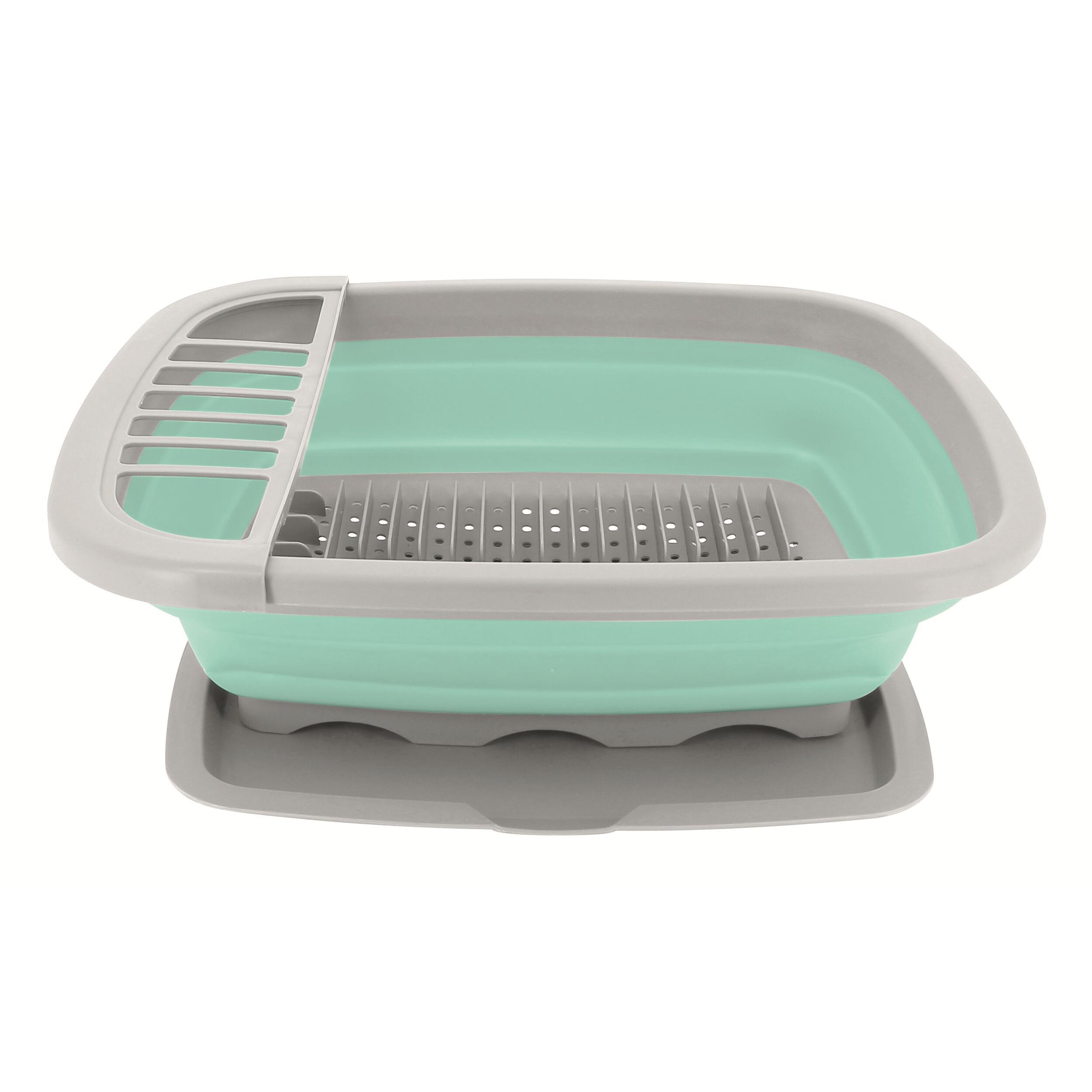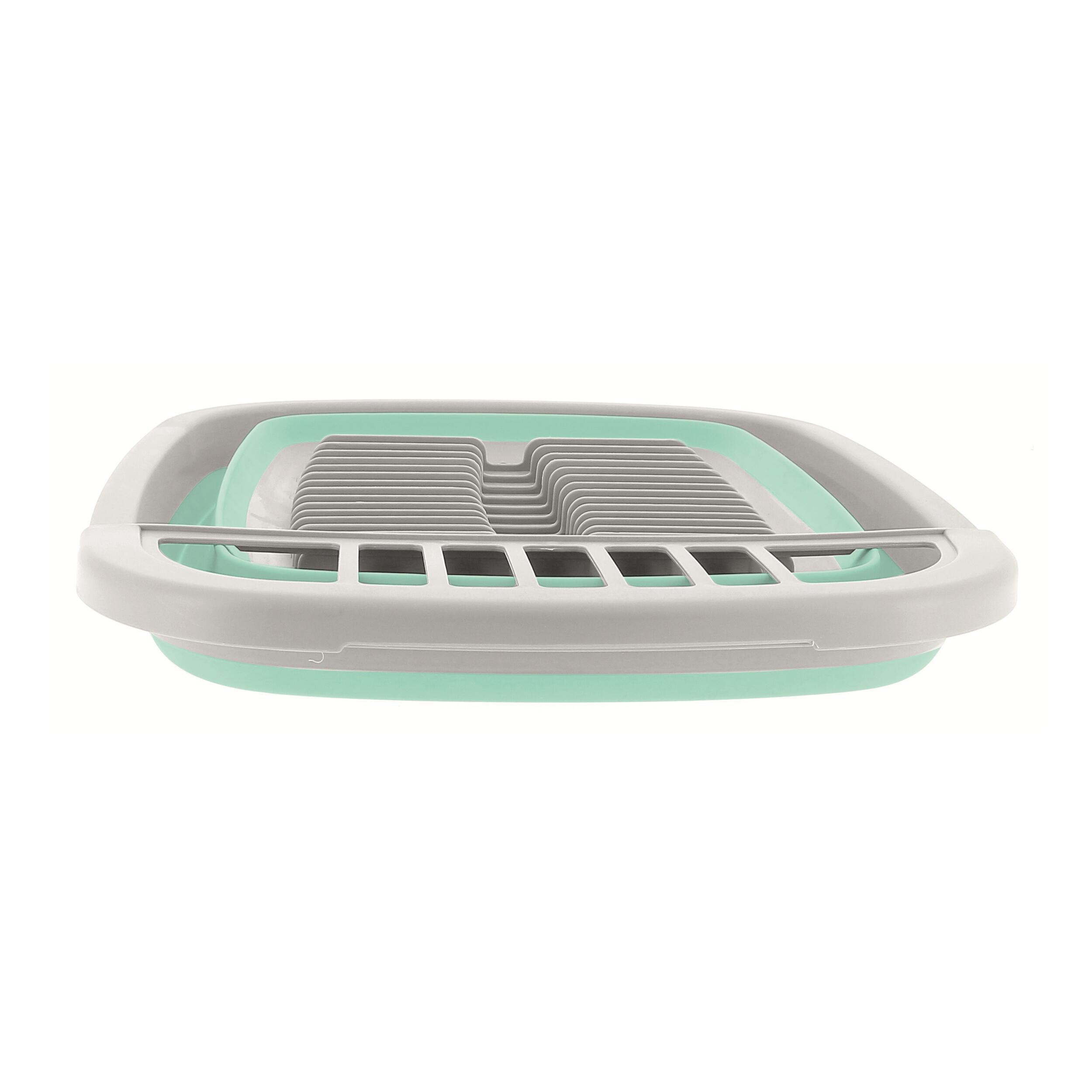 Cet égouttoir grande capacité est parfait pour les petits espaces. Permet de faire sécher vos assiettes, verres, bols et possède un espace dédié pour les couverts. Sa composition en plastique et silicone vous permet de le plier, une fois votre vaisselle sèche, pour gagner de la place.