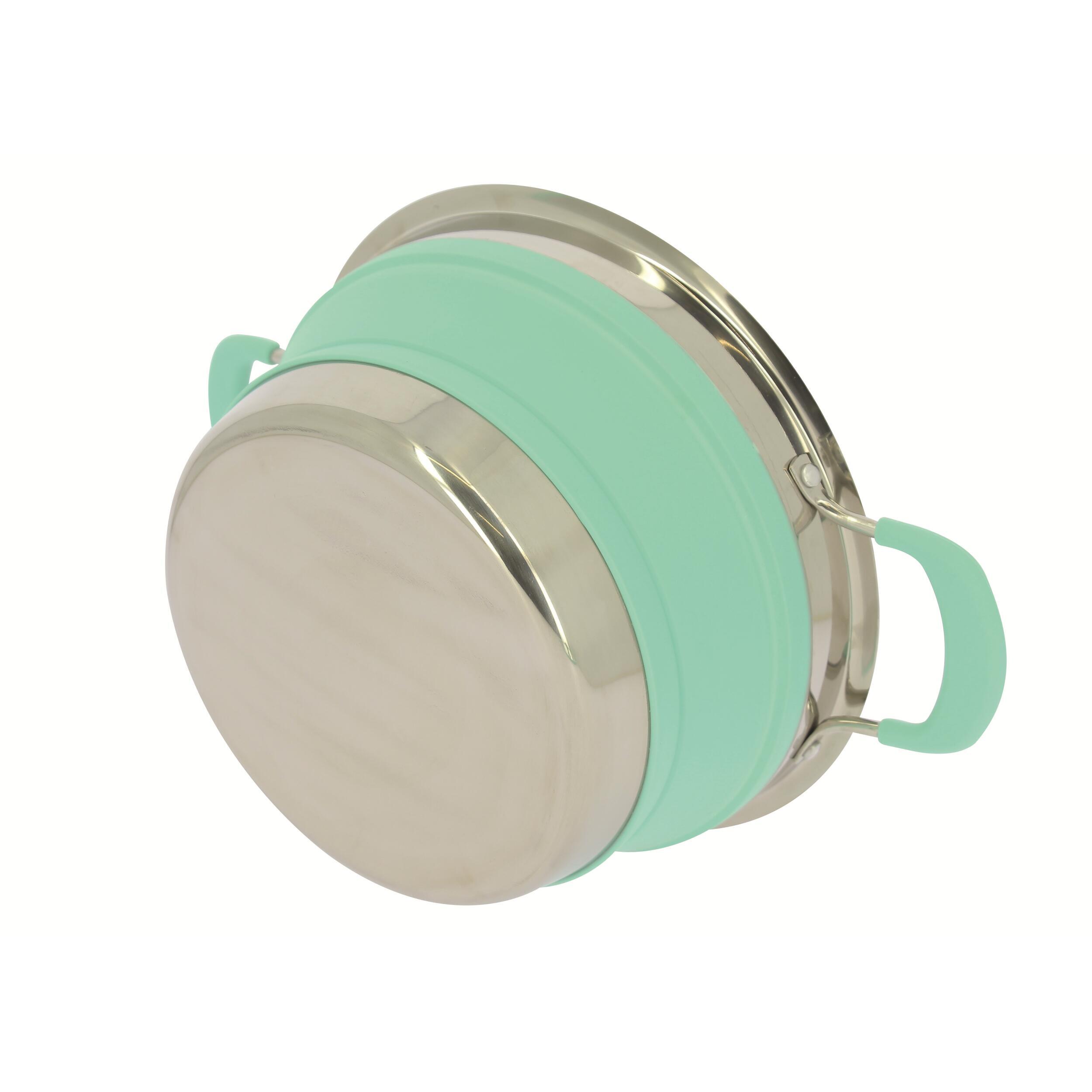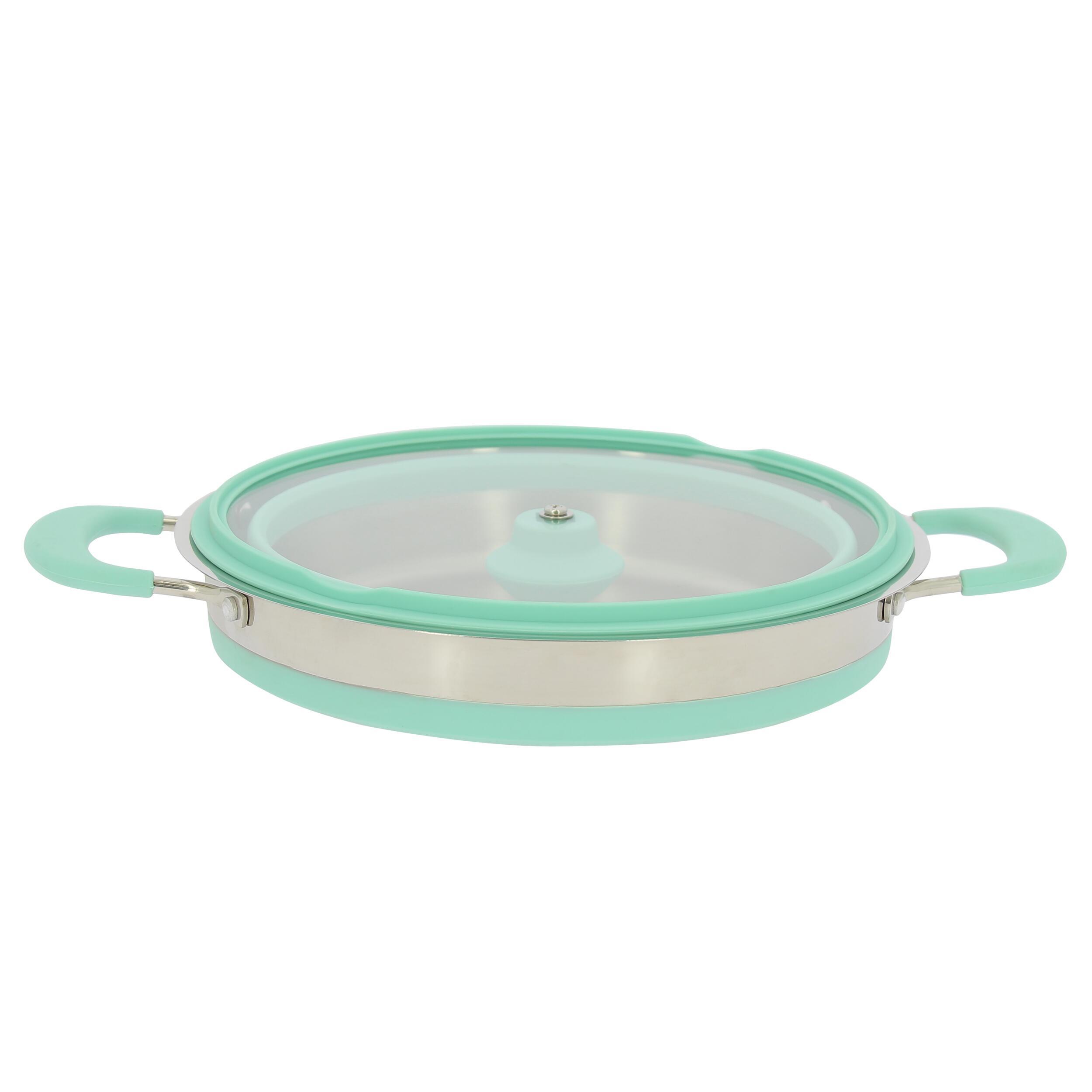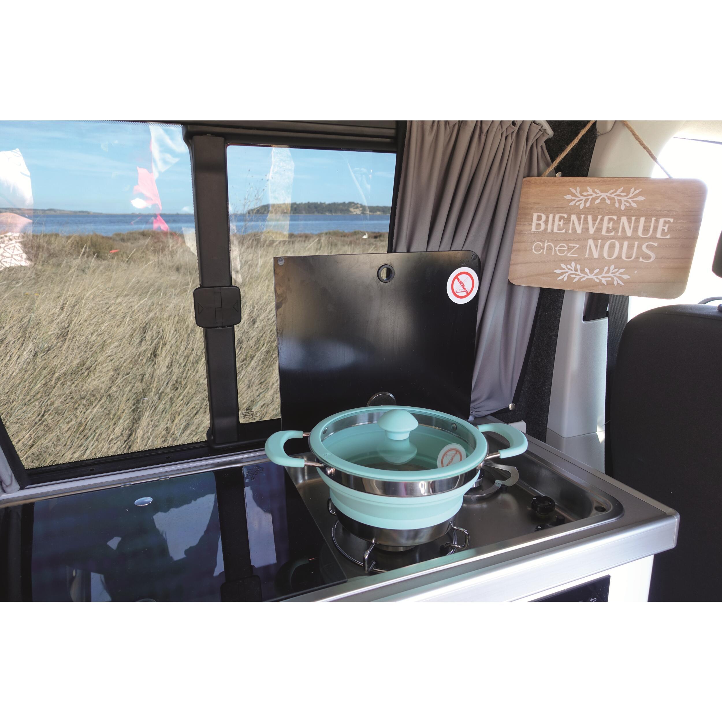 En silicone rétractable, acier inoxydable et verre renforcé. Couvercle en verre…