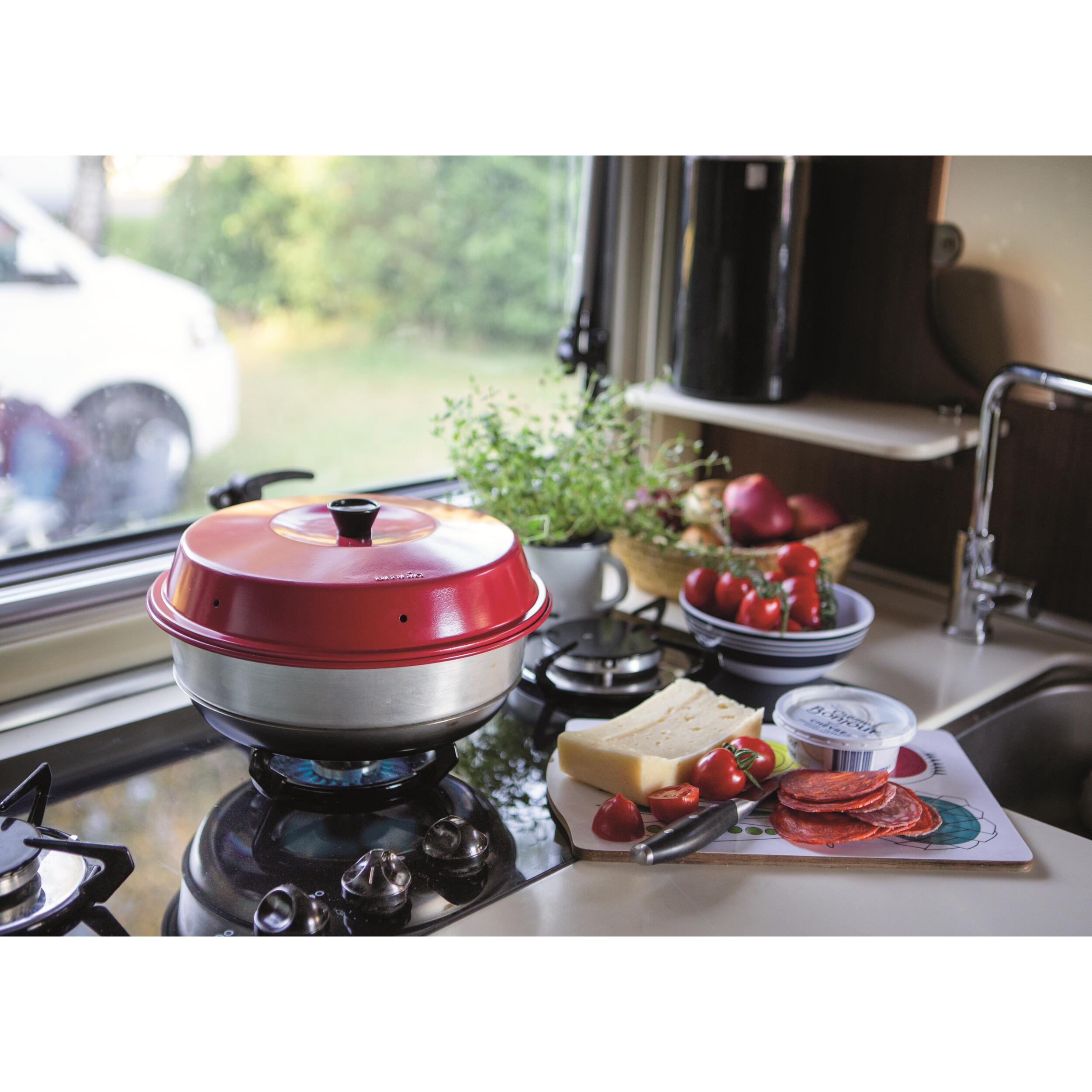 Un four portable, robuste, ingénieux et compact qui vous permet de déguster de bons petits plats variés. Il vous suffit de le poser sur une gazinière ou un réchaud à gaz et la chaleur se propage pour une cuisson douce et homogène.