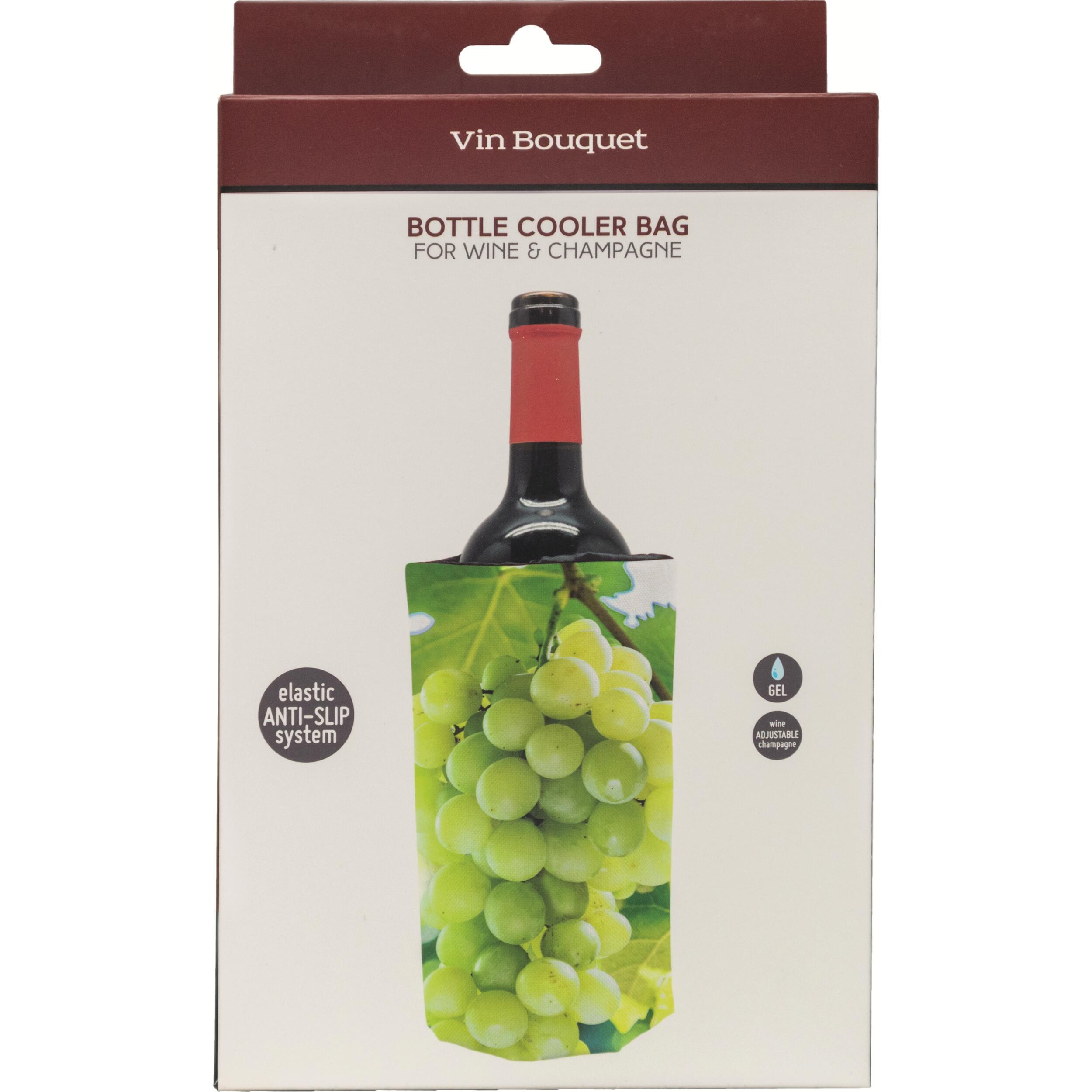 Gardez vos bouteilles de vin parfaitement fraîches avec la housse réfrigérante Nerthus au motif raisins blancs. Pratique et esthétique, elle assure un refroidissement rapide et durable tout en apportant une touche élégante à votre table.