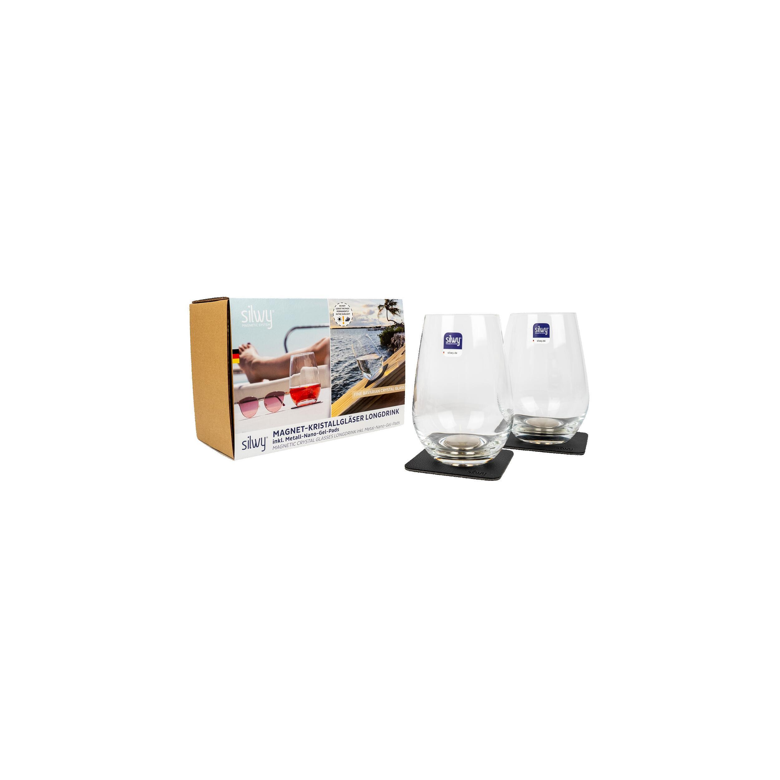 Lot de 2 verres en cristal magnétiques (0,40L) + 2 nano-gel pads métalliques.