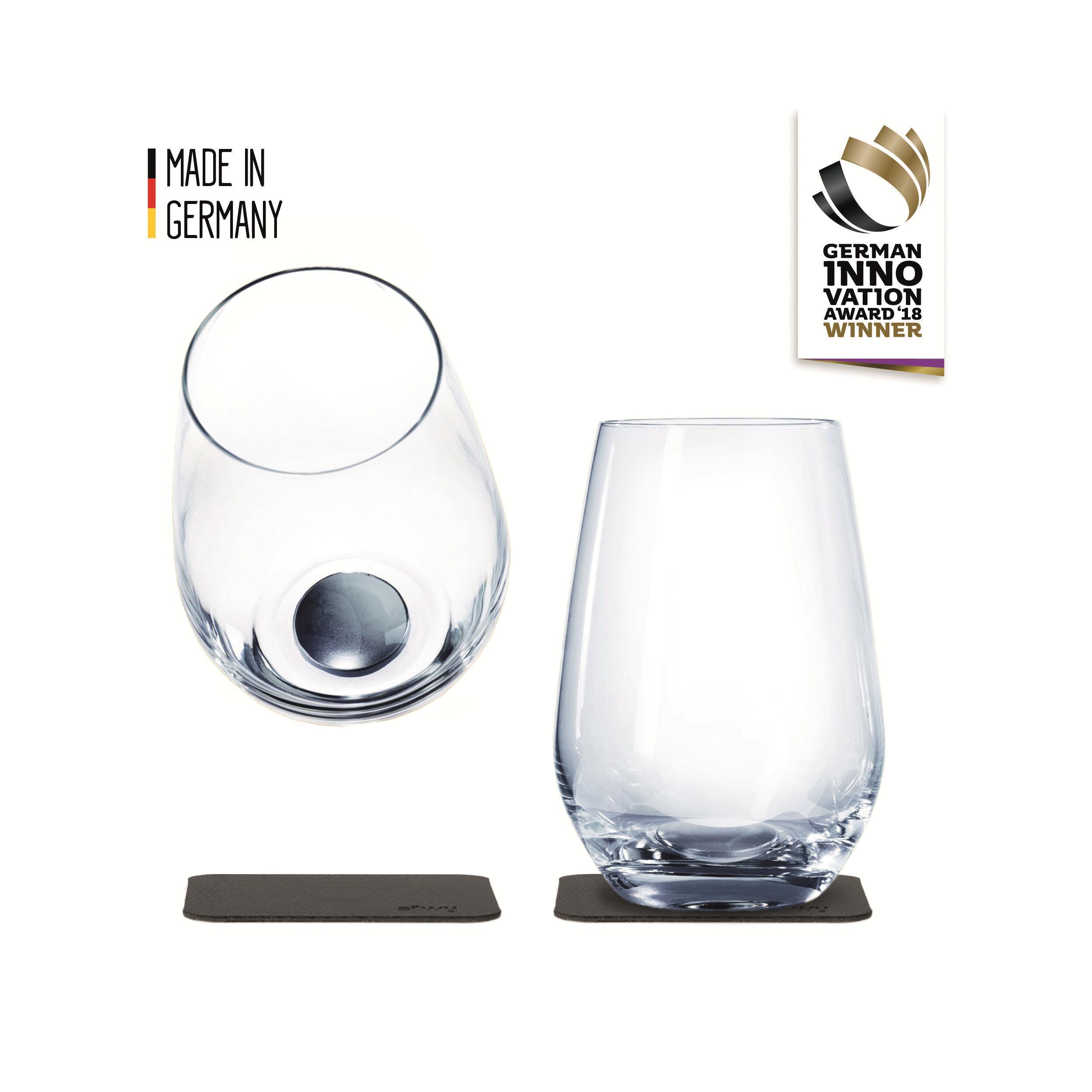 Verres magnétiques et stables en cristal avec un aimant moulé dans le fond du verre.