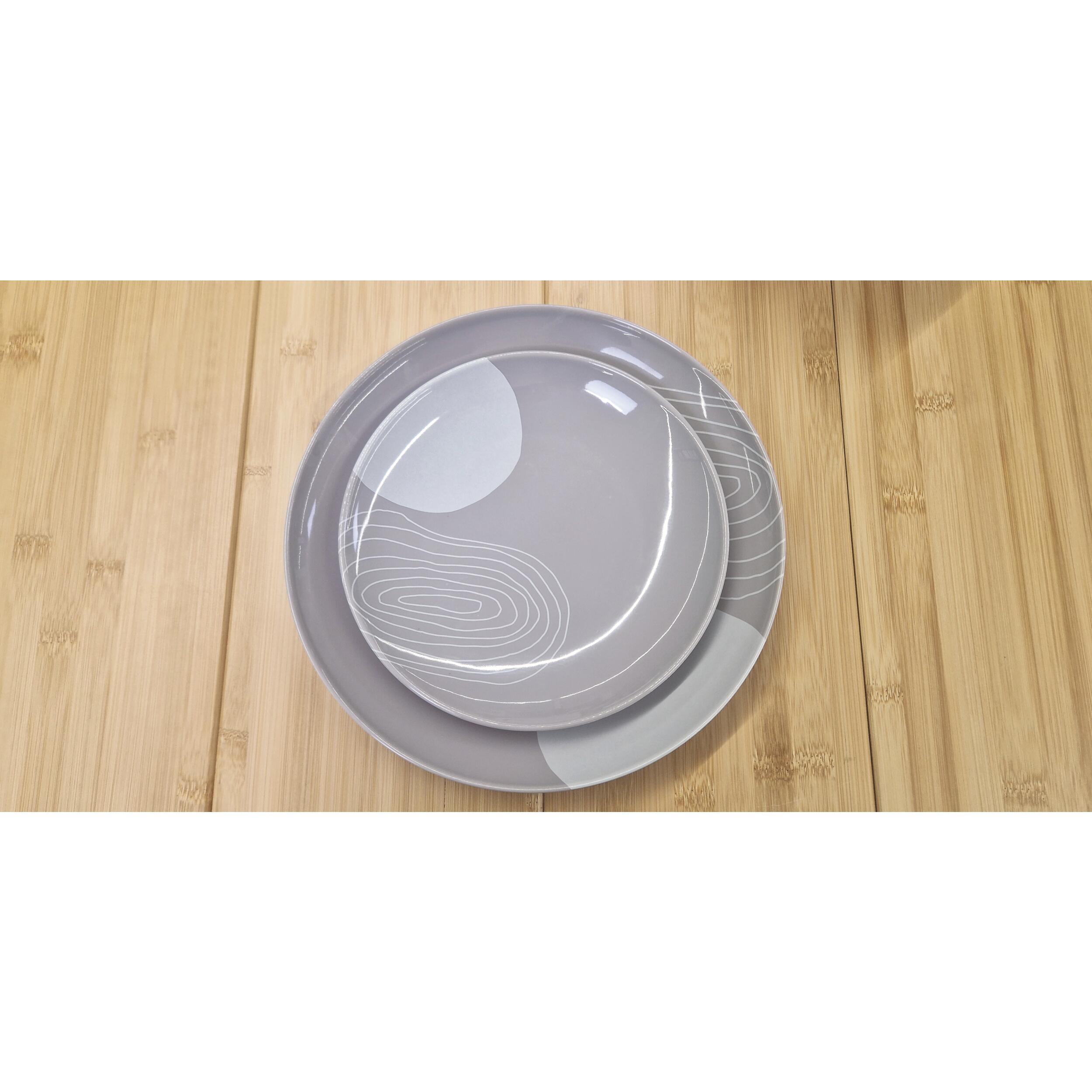 Lot de 4 assiettes plates Harmony en mélamine sans BPA, au design élégant et à la base antidérapante. Idéales pour vos repas en camping-car, van ou caravane : légères, solides et pratiques à chaque étape du voyage.