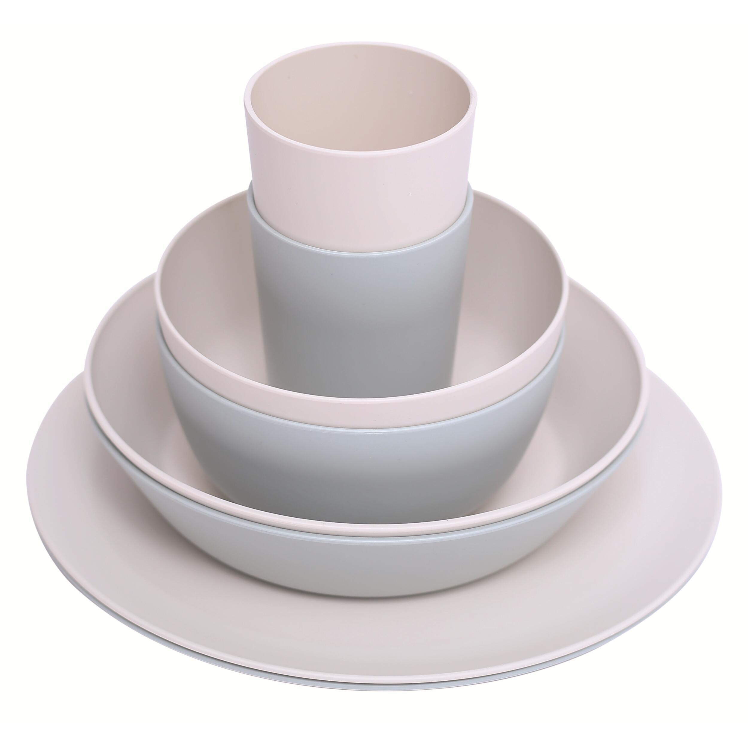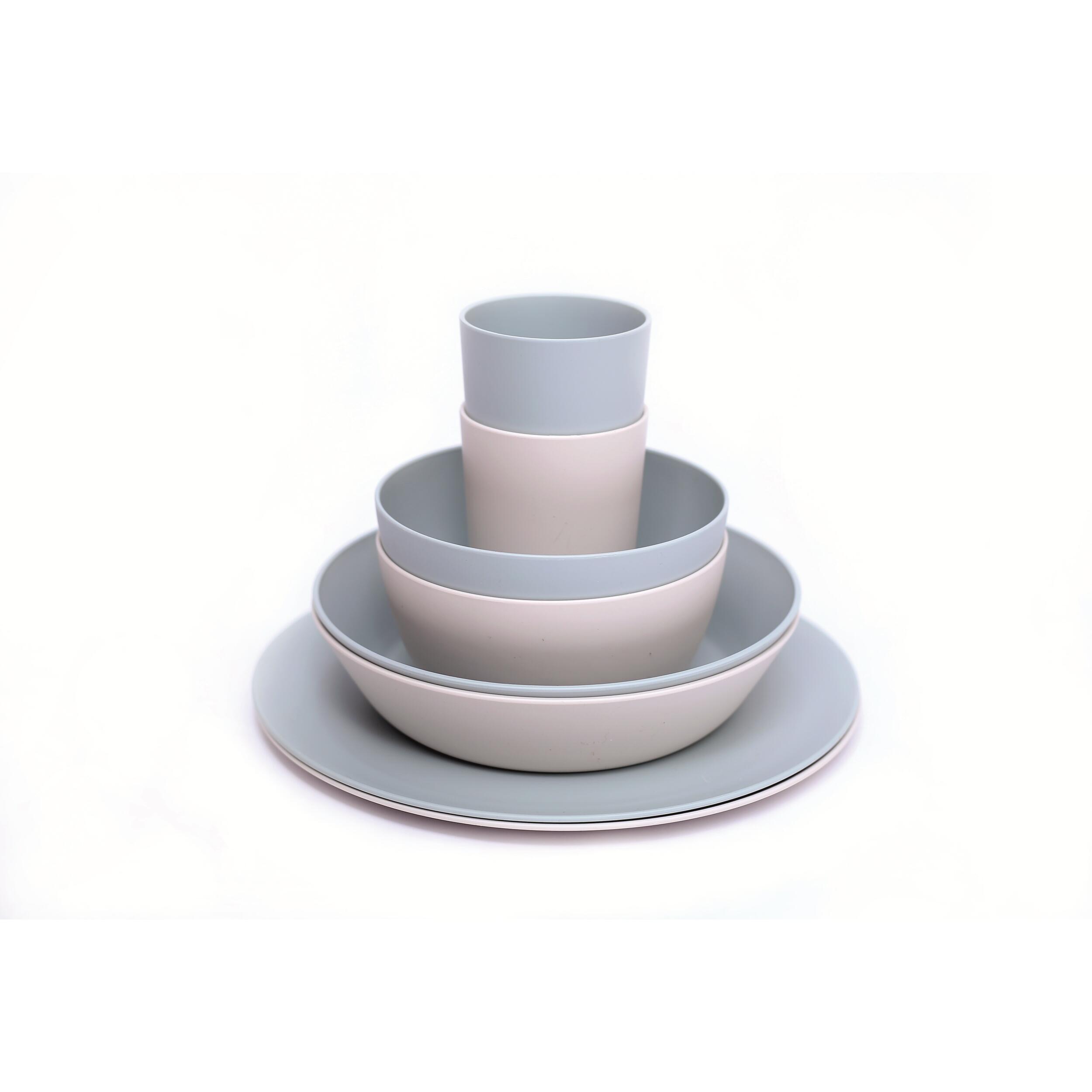 Le pack DUO de cette collection composé de 2 assiettes plates, 2 assiettes creuses, 2 bols et 2 gobletess aux différents coloris s’associe parfaitement pour créer une table harmonieuse et 100% Green !