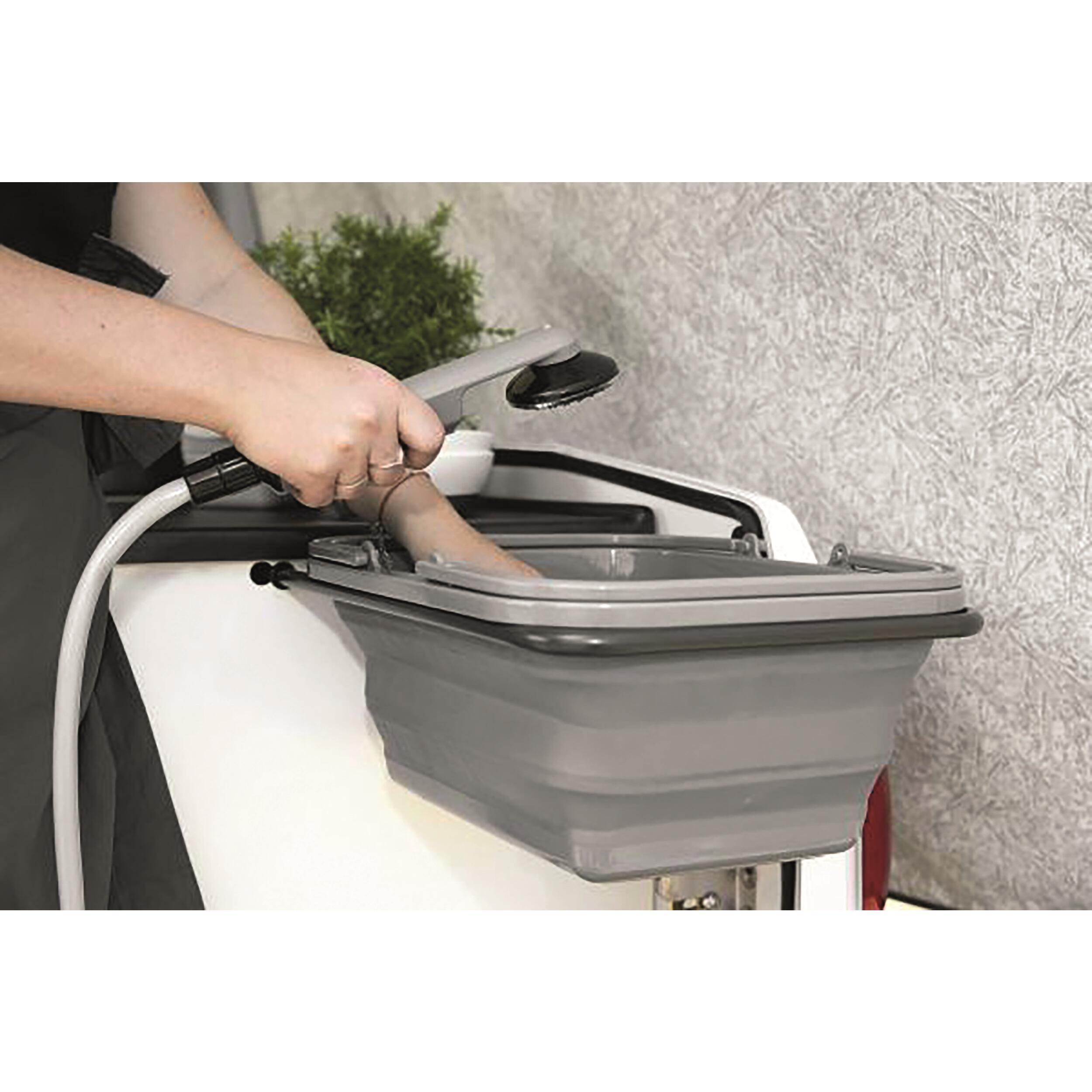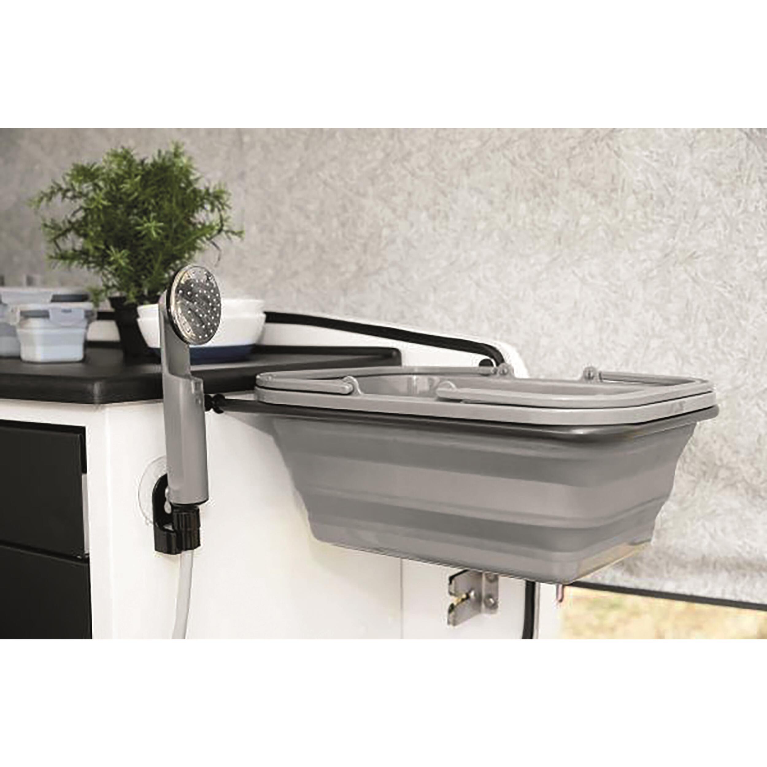 Avec cette pompe à eau rechargeable, vous disposez d'une pompe 2 en 1 avec pommeau de douche pour la salle de bain avec un tuyau de 1,8 m et d’un robinet pour la cuisine.