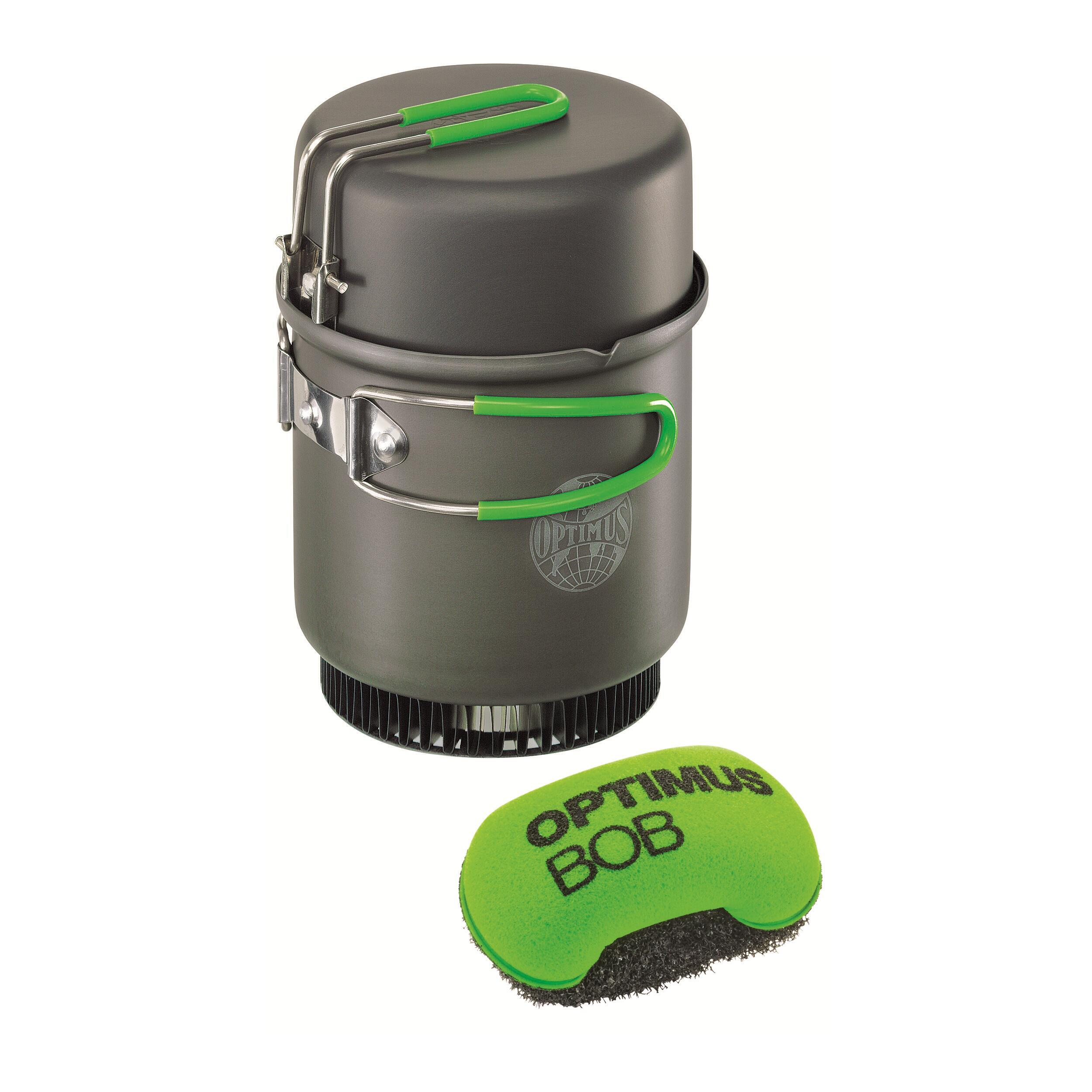 Composé d’une grande casserole de 0.95 L avec bec verseur et graduations (ml et oz), d’une poêle à frire qui peut aussi faire office de couvercle ainsi qu‘un sac en mesh pour le transport.