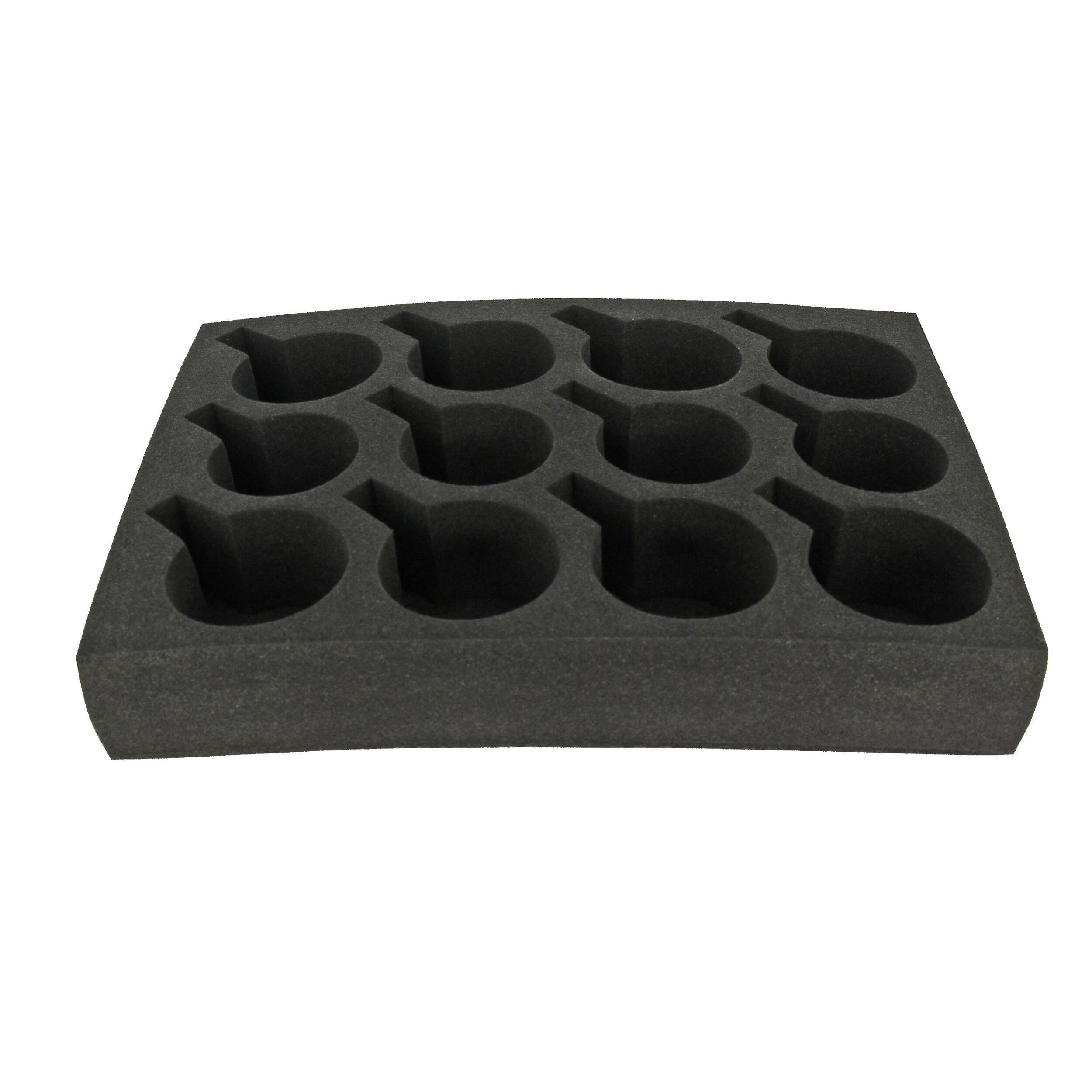 Pas besoin de verres spécifiques ou incassables : ce porte-verres accueille jusqu’à 12 verres de tailles variées. Il est doté de 8 emplacements de diamètre 6,5 cm, et de 4 autres de 6 cm, vous permettant de ranger verres à eau, à vin ou gobelets selon vos habitudes. Sa mousse découpée maintient chaque verre individuellement, limitant les mouvements même sur routes accidentées.