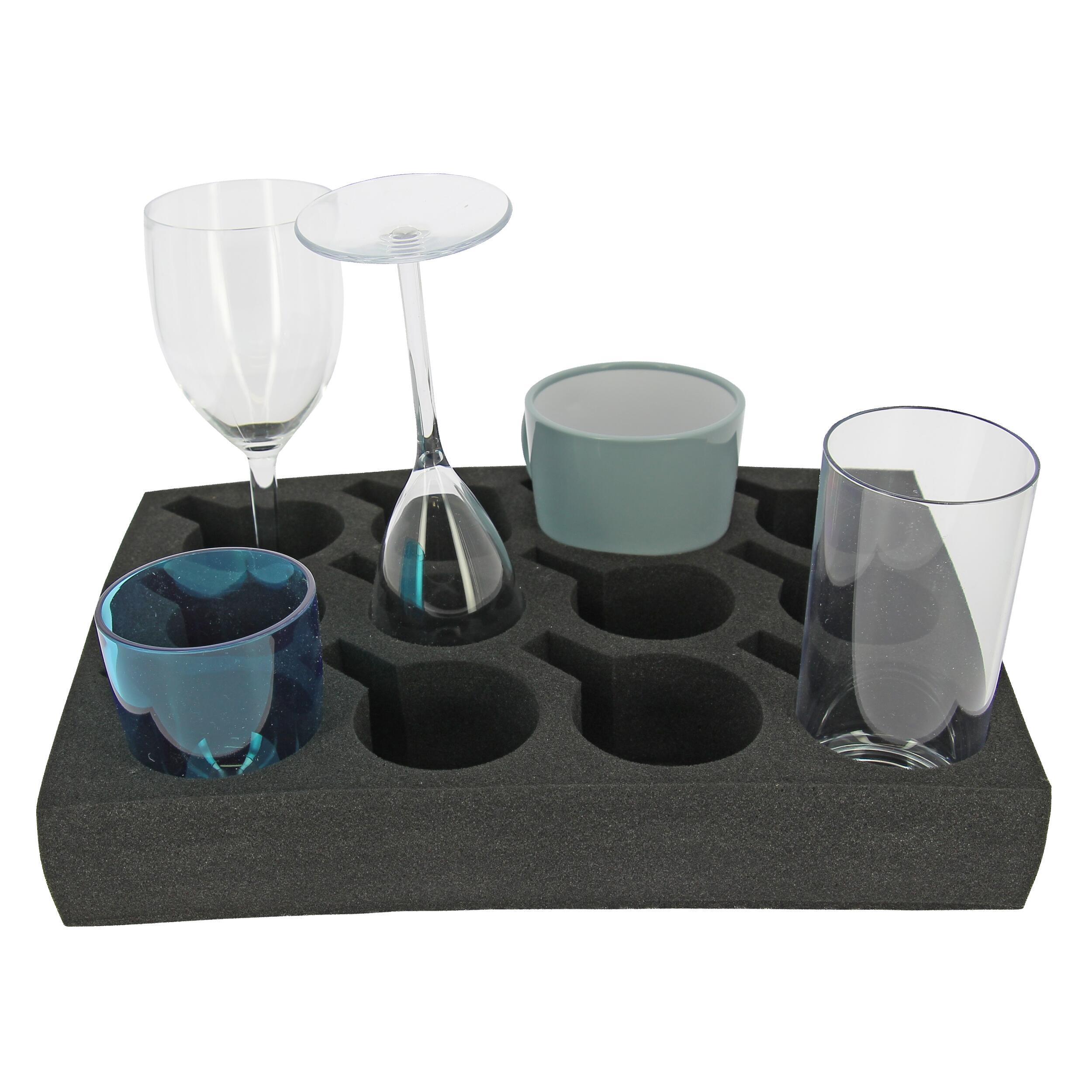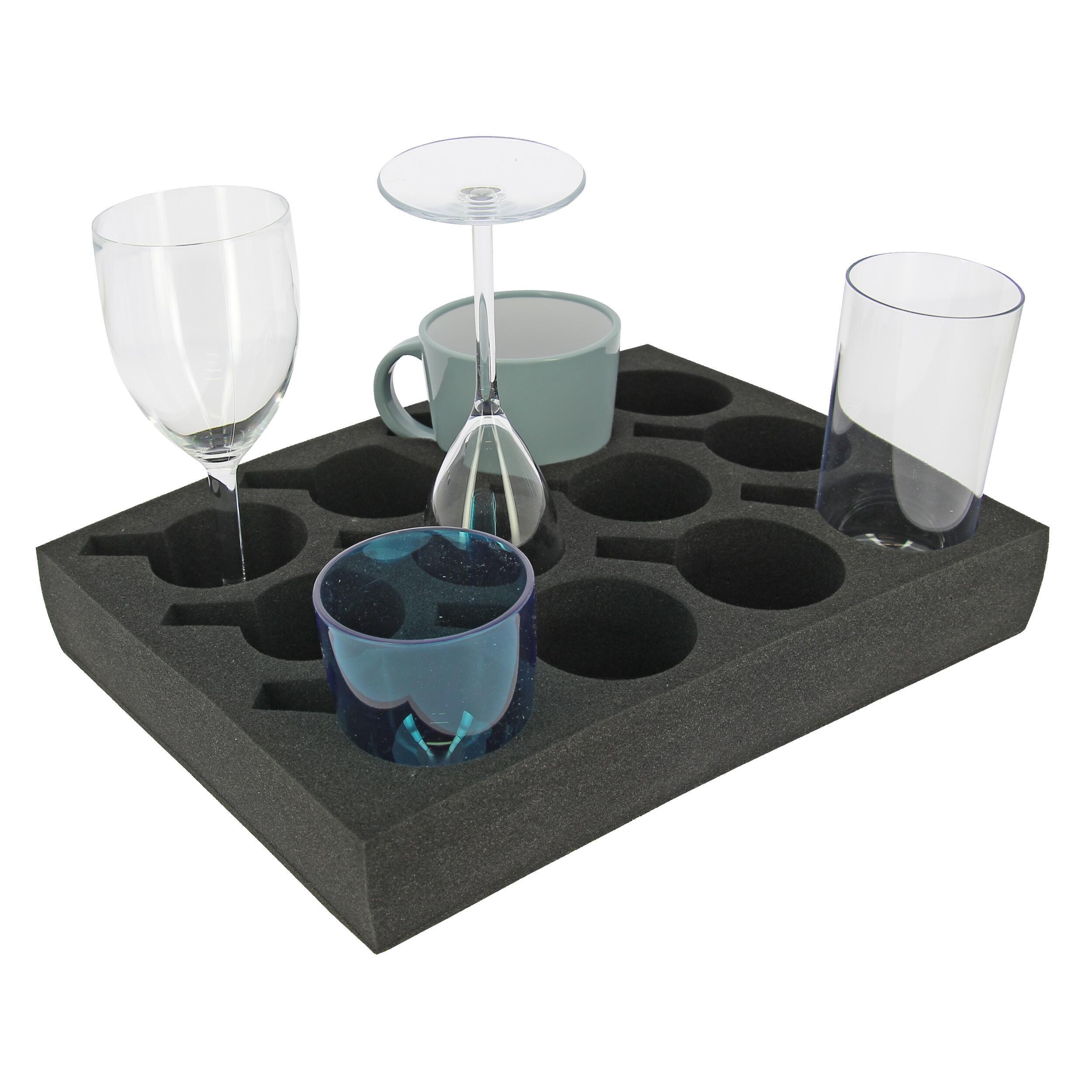 Transportez vos verres en toute sécurité avec ce porte-verres en mousse INCASA, idéal pour les voyages en camping-car sans casse ni bruit parasite.
