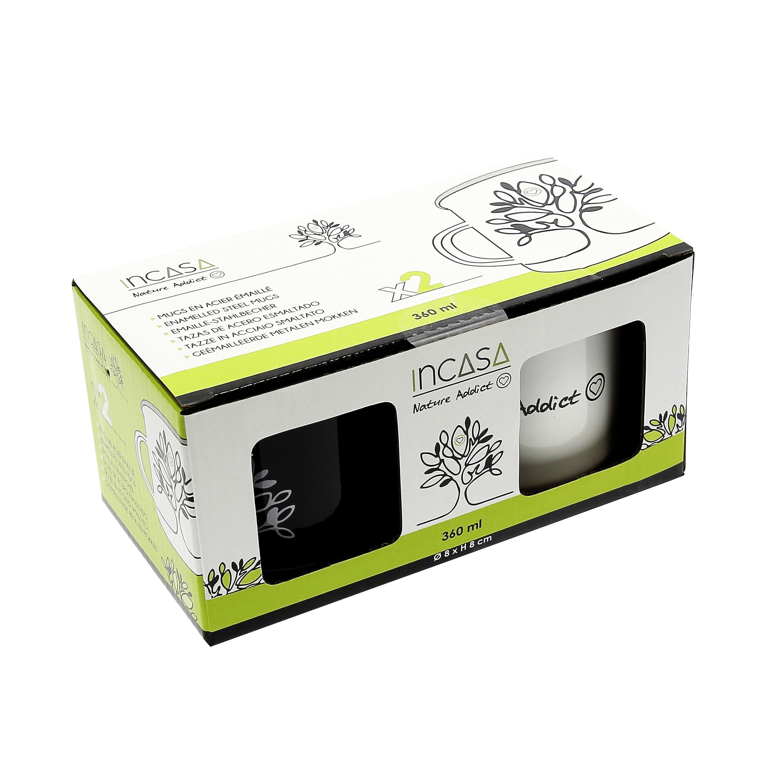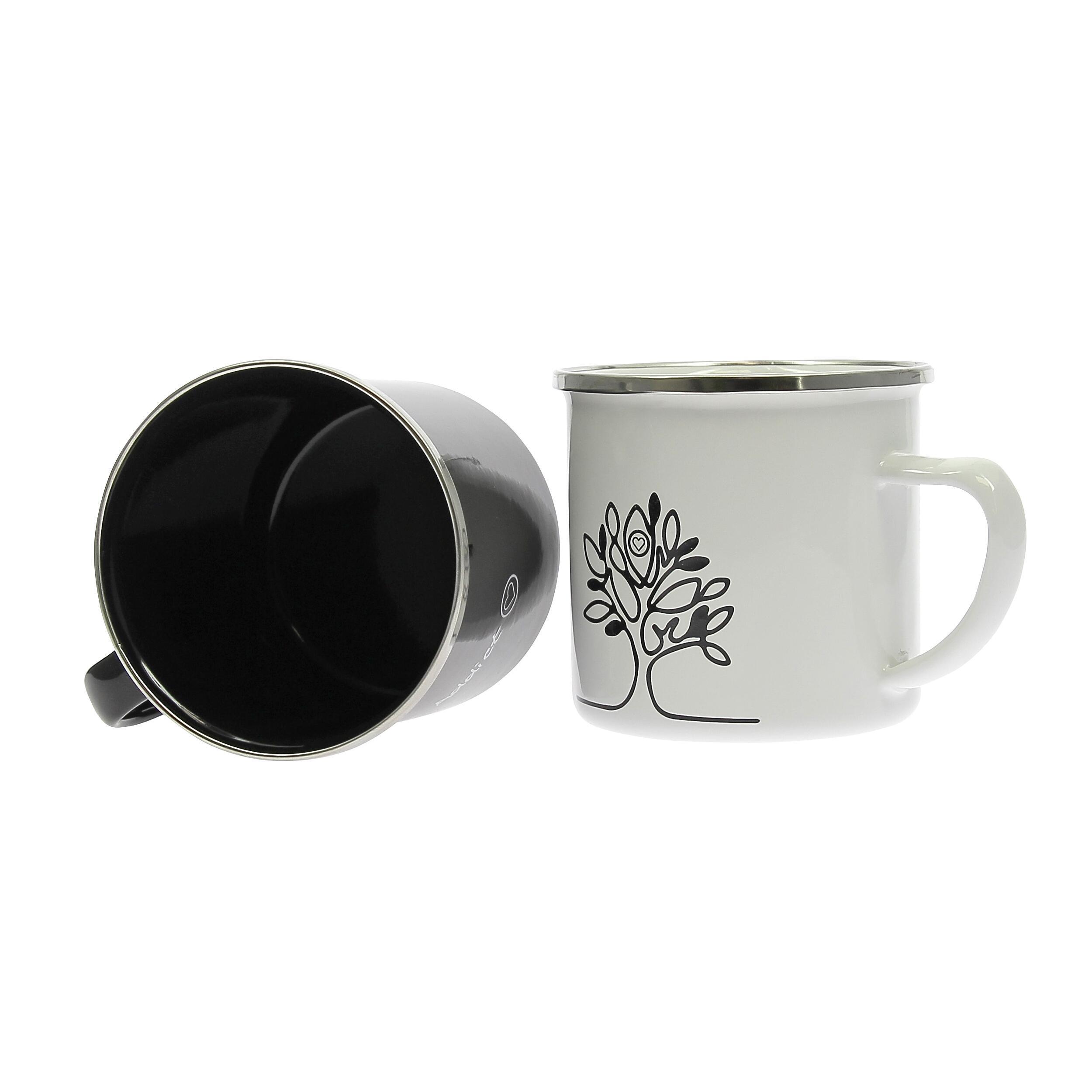 Set de 2 mugs en acier émaillé Ø8?cm, sans BPA, robustes, légers, résistants à 250?°C, parfaits pour vos boissons en camping ou en van.