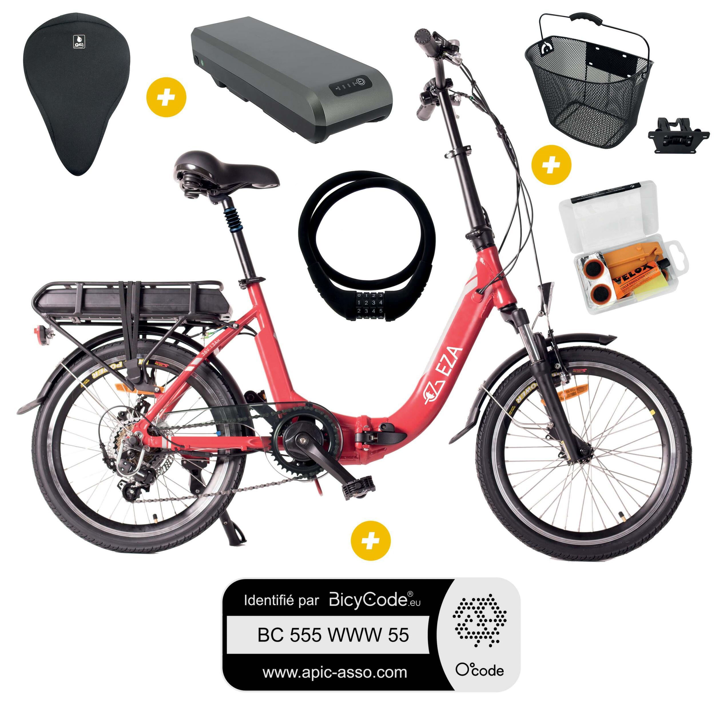 Réf 400150BI Vélo à assistance électrique Confort 20'' Rouge 13Ah