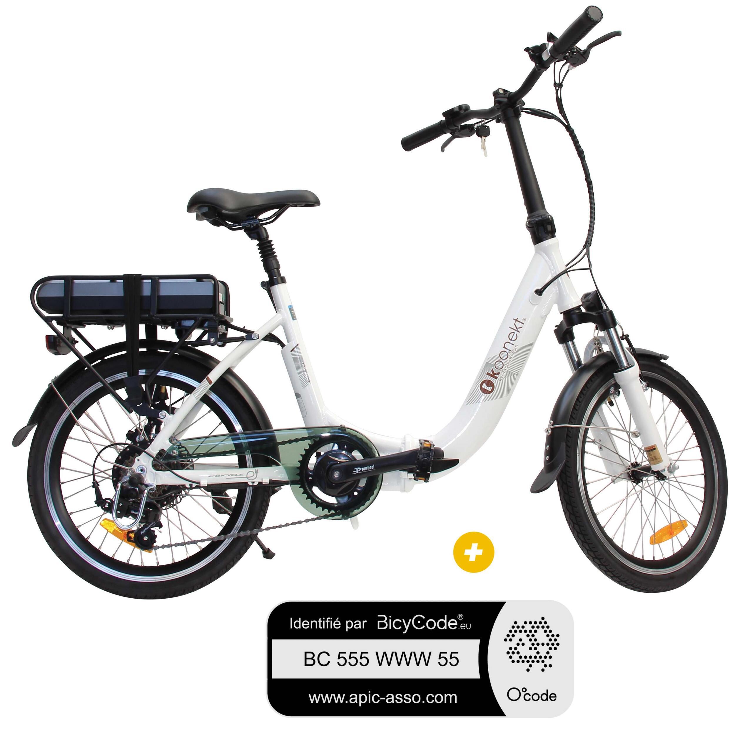 Réf 400109BI: Vélo à assistance électrique pliant 20 Pouces Blanc Confort