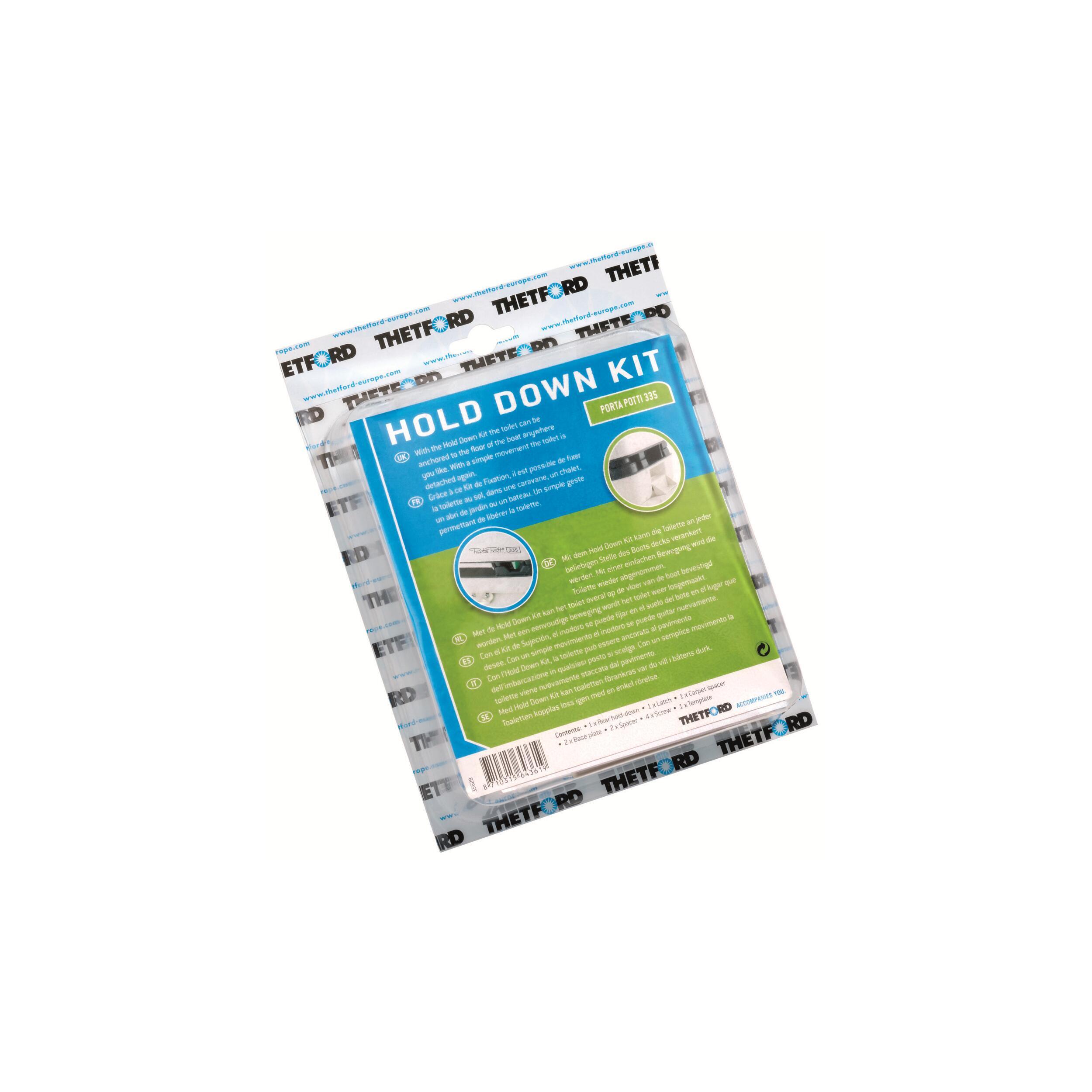 Solution pratique pour la fixation de votre toilette portable Porta Potti au sol. Un simple geste permet de libérer le toilette.