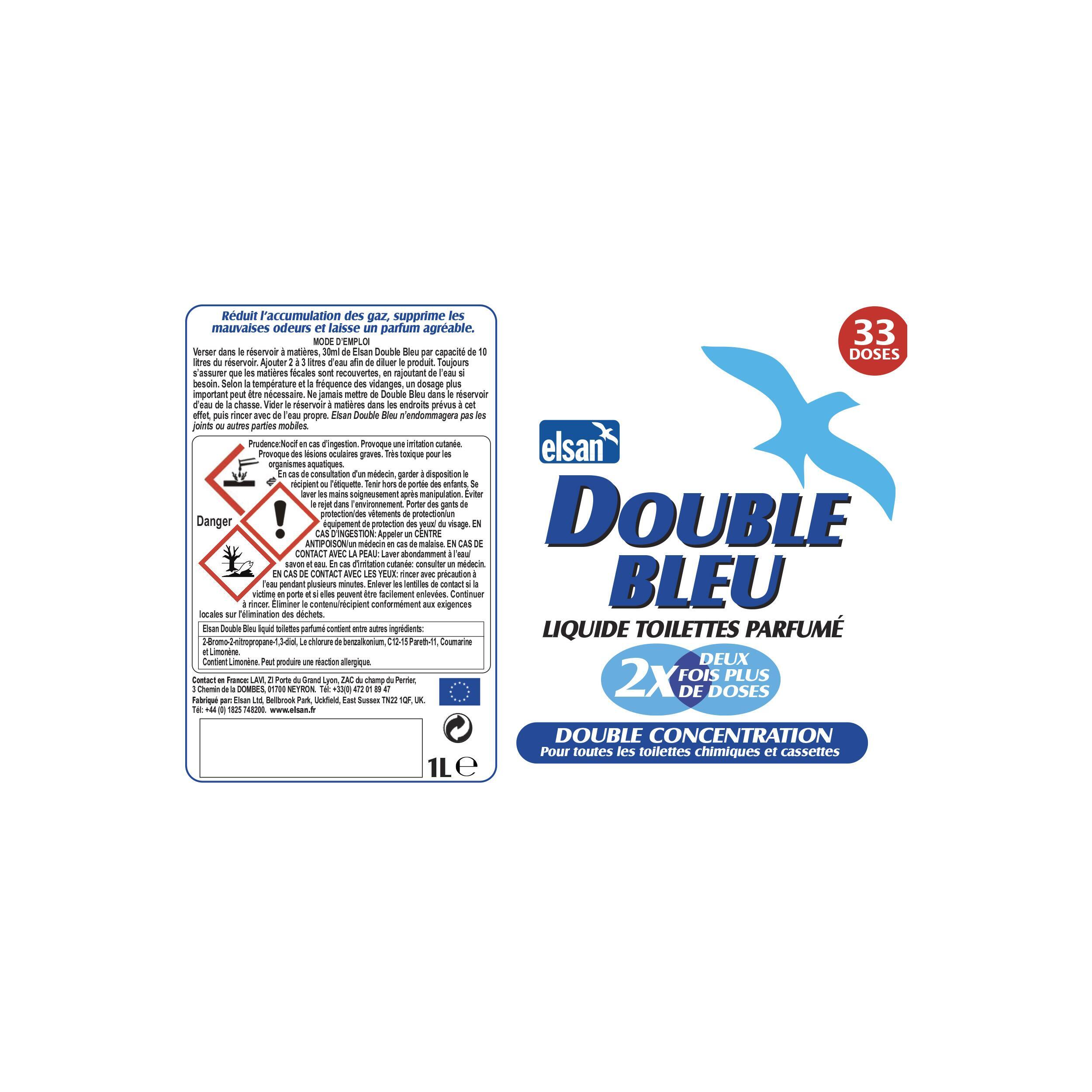 ELSAN Bleu Concentré, additif puissant pour toilettes chimiques : désagrège déchets, limite gaz et parfume jusqu'à la vidange. Formule concentrée : 1L = 2L classique.